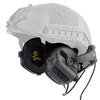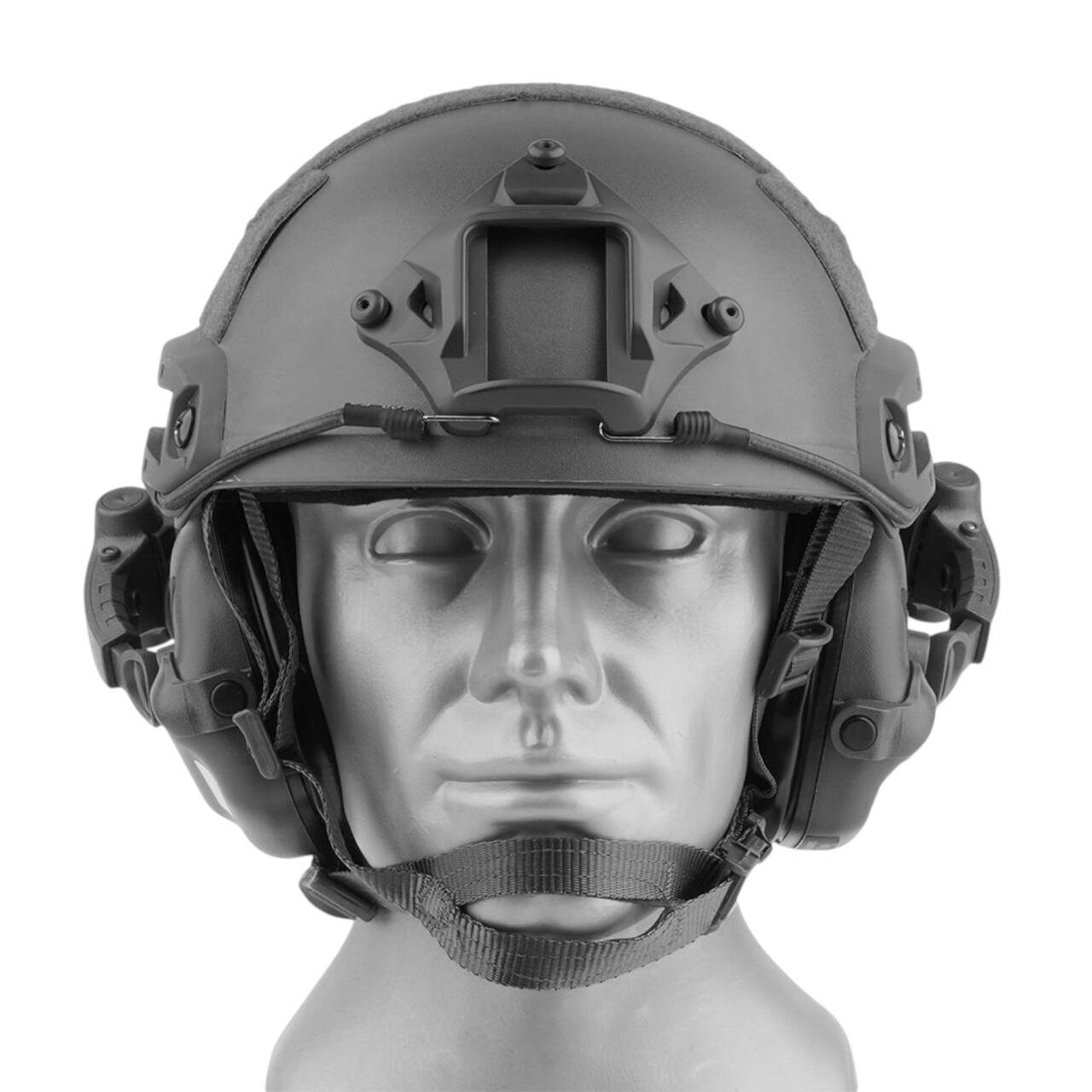 Active hearing protectors with earphone holders. Suppress intense noises without stopping conversations. 3.5mm AUX audio input. NRR of 22 dB. Meets MIL-STD-416 and MIL-STD-810G standards and IP67 protection rating. Color: black.