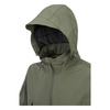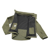 Lightweight softshell tactical jacket with detachable hood with 2 inside zippered pockets and water-repellent, windproof, breathable outer shell composed of 92% polyester and 8% spandex.