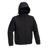 Lightweight softshell tactical jacket with detachable hood with 2 inside zippered pockets and water-repellent, windproof, breathable outer shell composed of 92% polyester and 8% spandex.