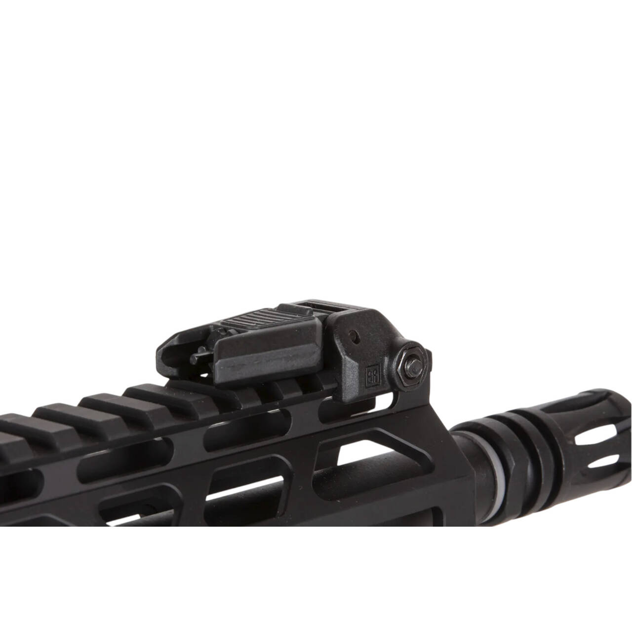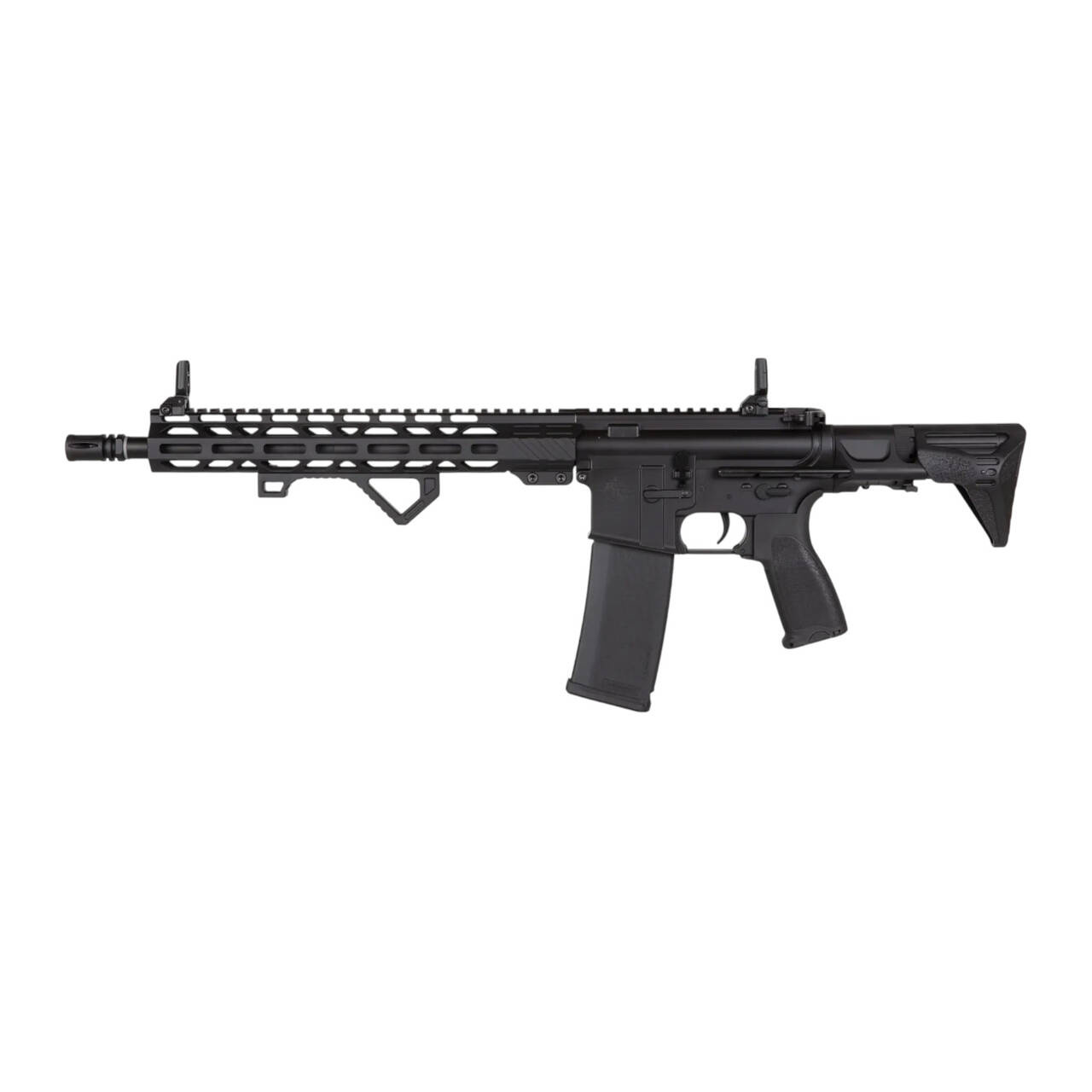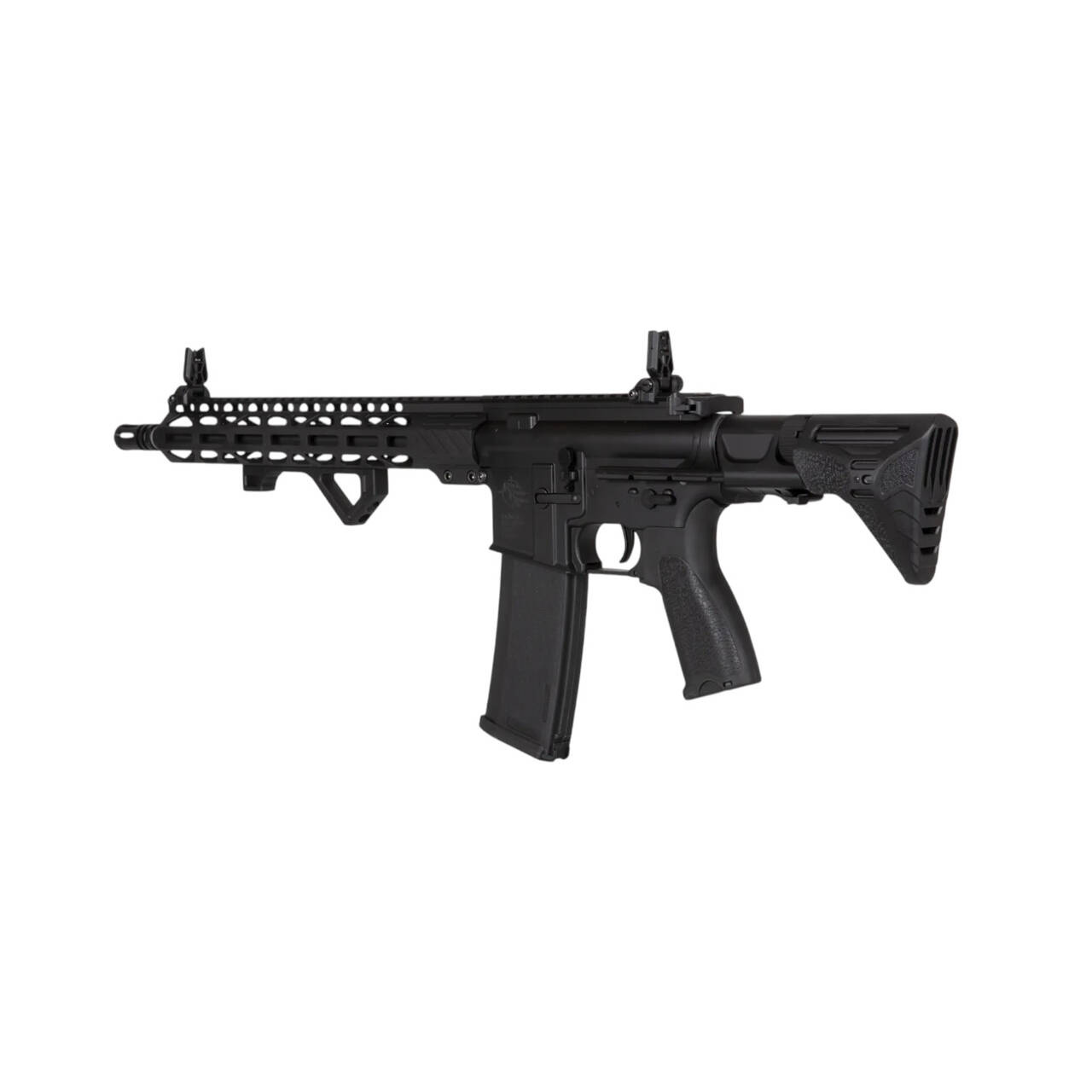 The rifle is equipped with Rock River Arms®-licensed RRA Lightweight Free Float Rail in M-LOK licensed Rock River Arms® front rail, the barrel is finished with a standard exhaust mounted on a 14mm CCW thread. Folding sights are placed on the rear of the replica.