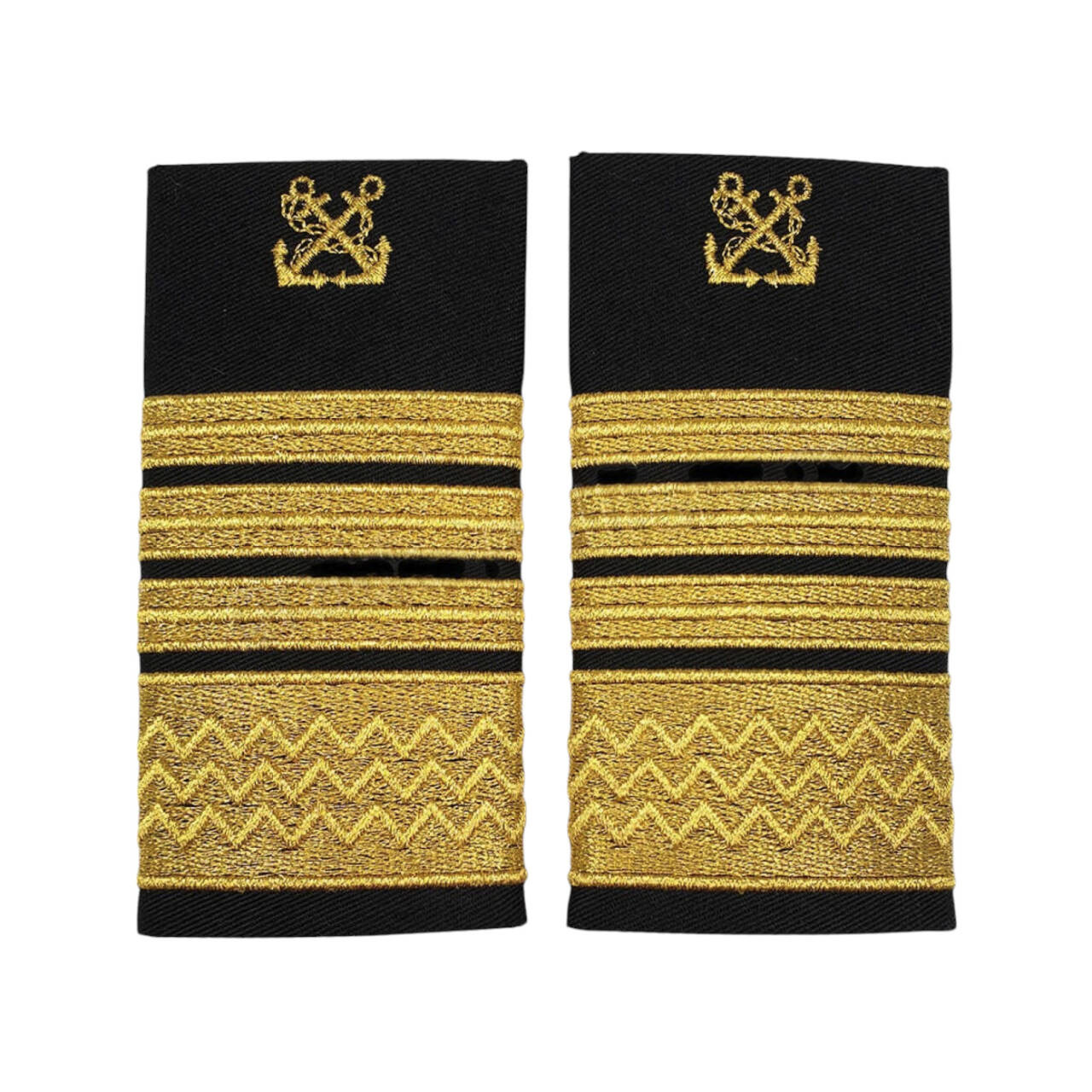 Grade Capitan sef de port ANR brodate cu fir metalic auriu pe un suport confectionat din tesatura cu compozitia 65/35% bumbac/poliester de culoare neagra cu intaritura termocolata. Sunt potrivite pentru sefi servicii/birouri din aparatul central ANR.