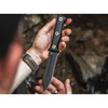 The impressive Pilot Knife from American knife maker Dave Wenger is a fully matured outdoor and survival knife with a tactical orientation. The massive D2 blade has extremely high edge retention, is robust, and has an abrasion-resistant powder coating. The military character of the fixed blade is emphasized by the hollow groove on both sides and the distinctive sawback. The ergonomic G10 scalloped G10 handle promises a comfortable grip and a secure hold in any situation, and in this new version, it is equipped with sturdy full tang blade screws. Comes with a custom Kydex sheath and belt clip.