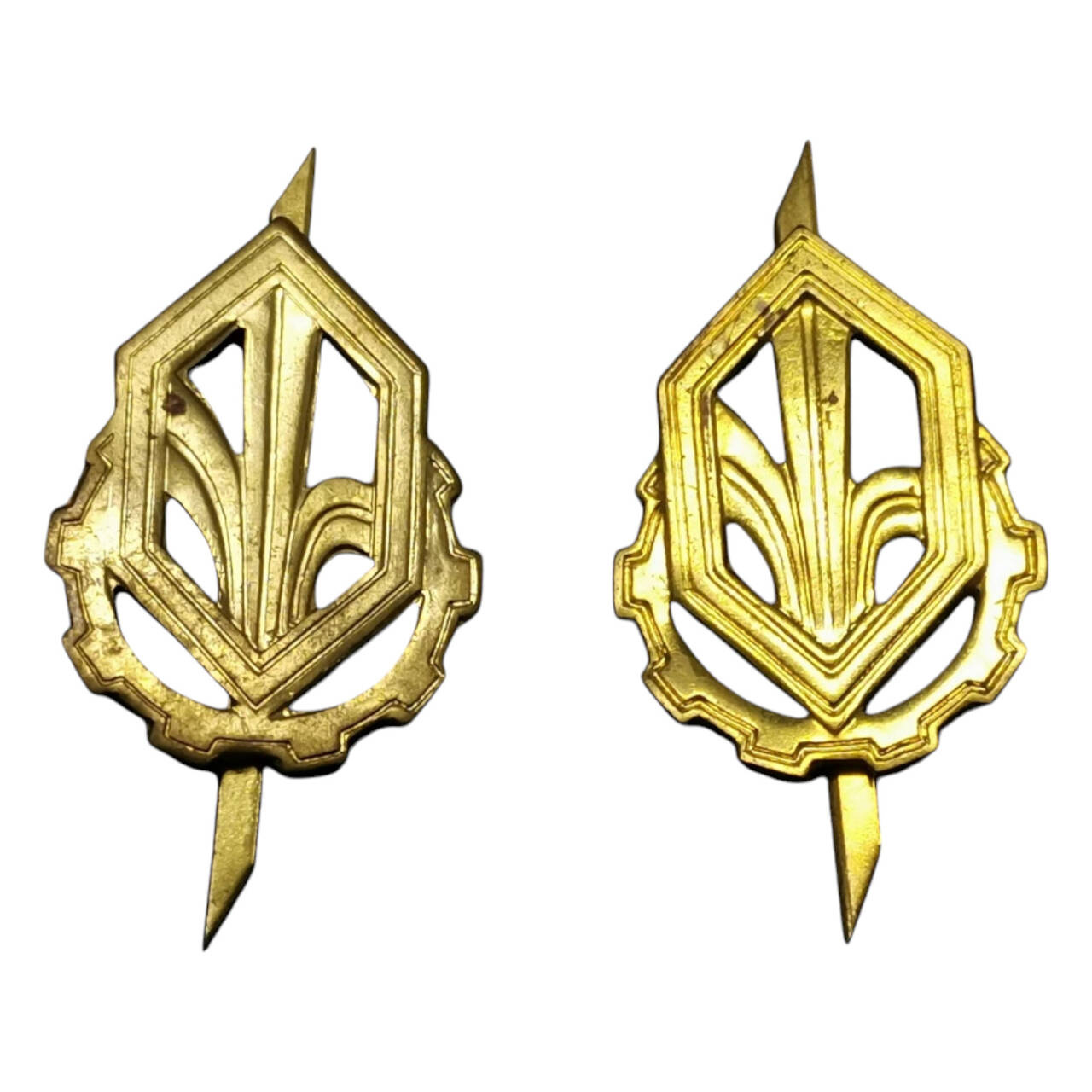 • PAIR OF RANK INSIGNIA - CHEMISTRY - ROMANIAN ARMY MILITARY SURPLUS - GOLDEN - IN GOOD CONDITION