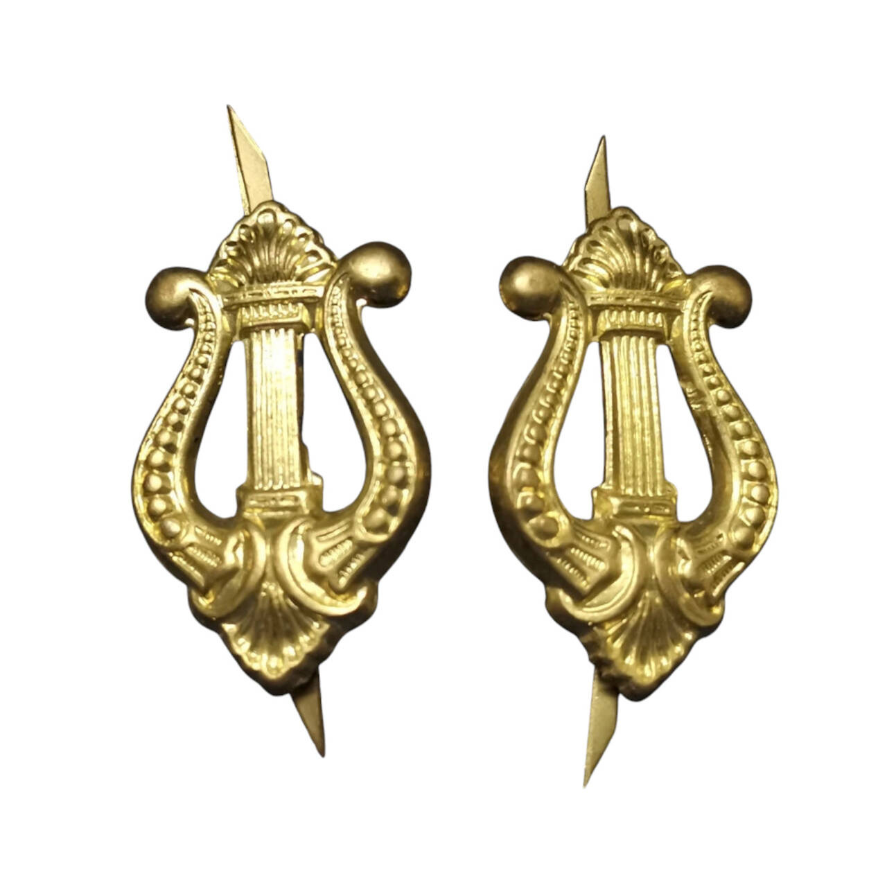 PAIR OF RANK INSIGNIA - MUSIC - ROMANIAN ARMY MILITARY SURPLUS - GOLDEN - IN GOOD CONDITION