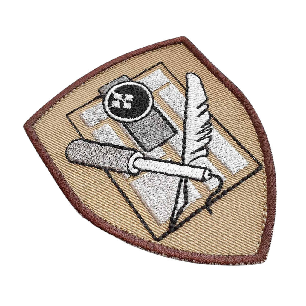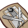 Military SurplusEMBLEMA SEMN DE ARMA MANECA SCUT - INFORMATII PENTRU APARARE - BRODATA PE SUPORT KAKI CU FIR MARO3,50 €693.68 PTS