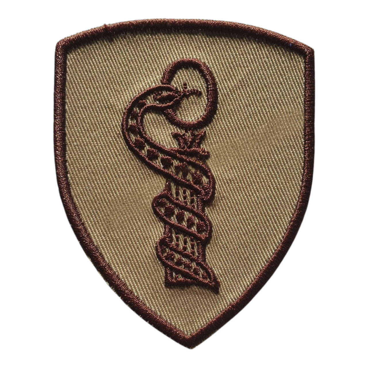 EMBLEMA SEMN DE ARMA MANECA SCUT - MEDICAL - BRODATA PE SUPORT BEJ CU FIR MARO