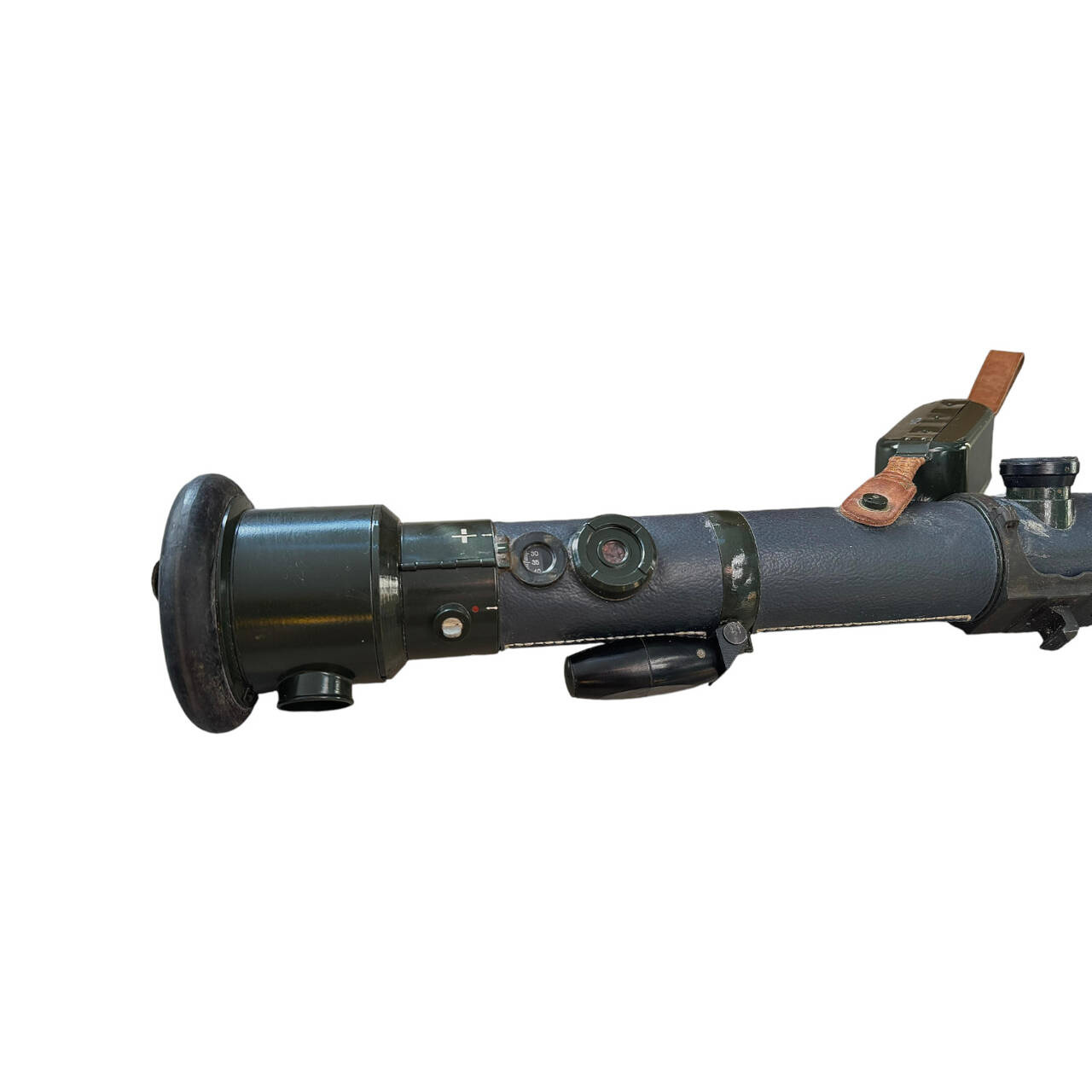 This stereoscopic rangefinder is a rare and remarkable example of an optical instrument. Unlike coincidence rangefinders, which have a single eyepiece, the stereoscopic rangefinder is distinguished by its two eyepieces, utilizing the principle of binocular vision for precise measurements.