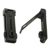This type of bracket is equipped with a flat quick-coupling clip that allows the bracket to be quickly inserted onto a belt with one hand and without the need to undo the belt. Compared to the UBC-01 attachment clamp, the distance between the belt and the holder is smaller with this type of clamp. The bracket can be rotated relative to the belt in a full 360-degree circle with 16 locking positions. It can also be attached to a MOLLE strap.