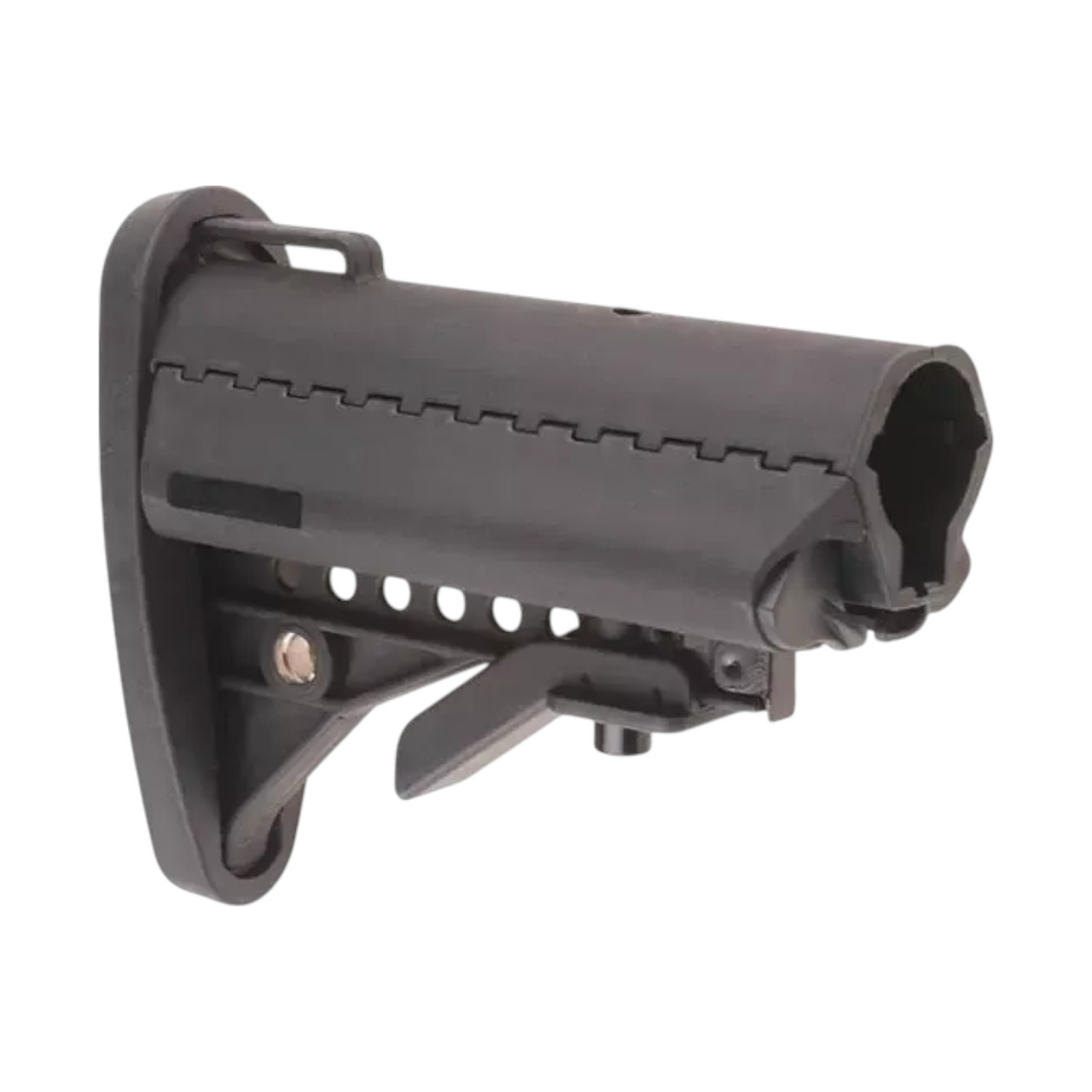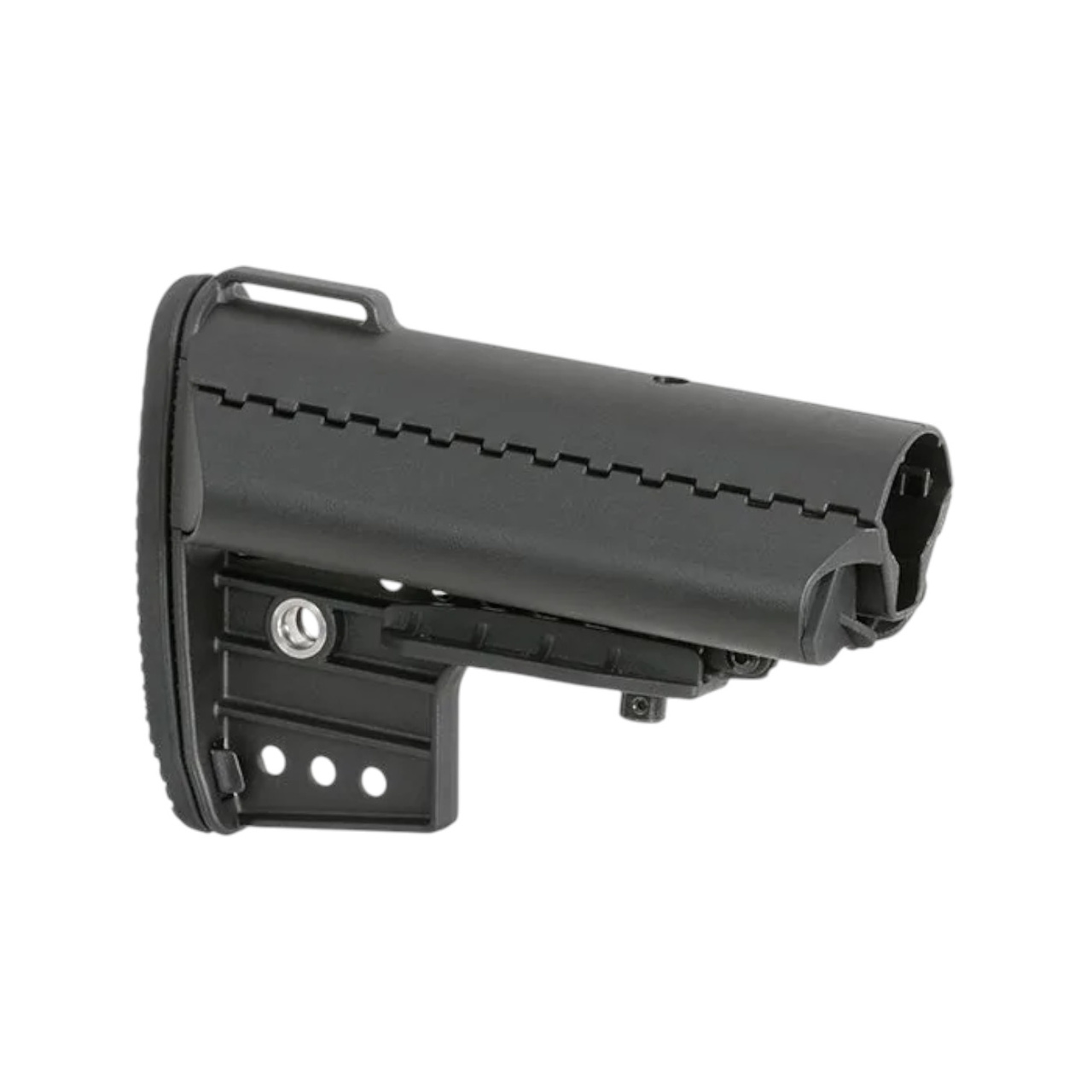 This telescopic stock, made of durable polymer, is designed for mounting on M4/M16 replicas. The length of the stock is adjustable, allowing quick adaptation to the user's preferences and the game scenario.