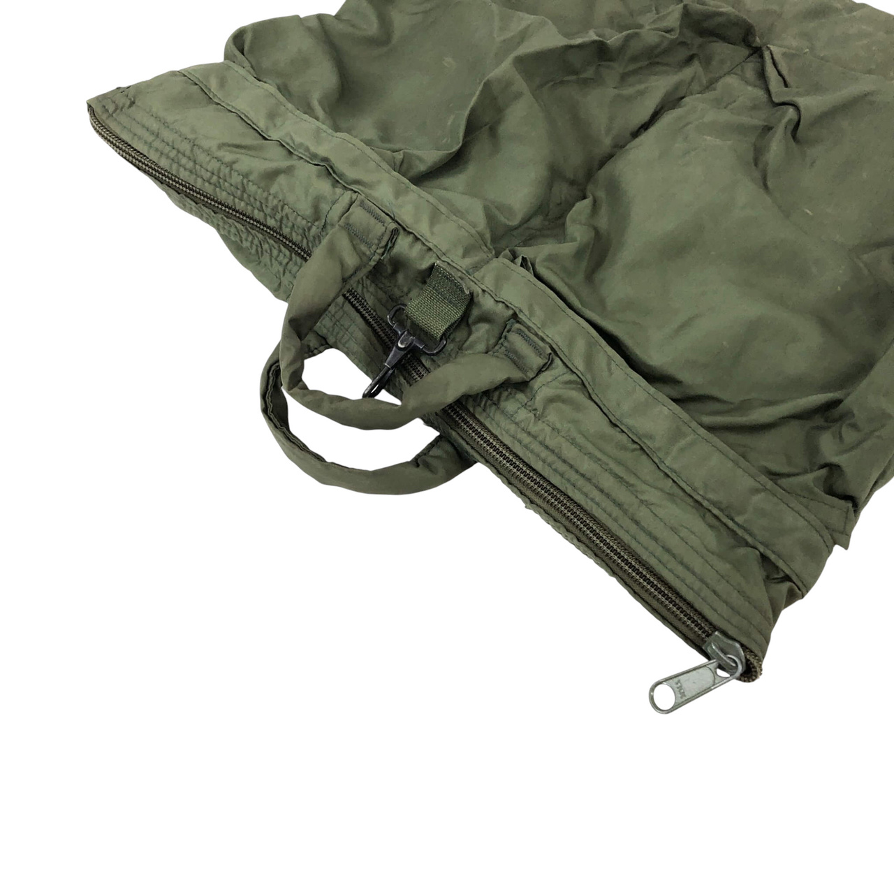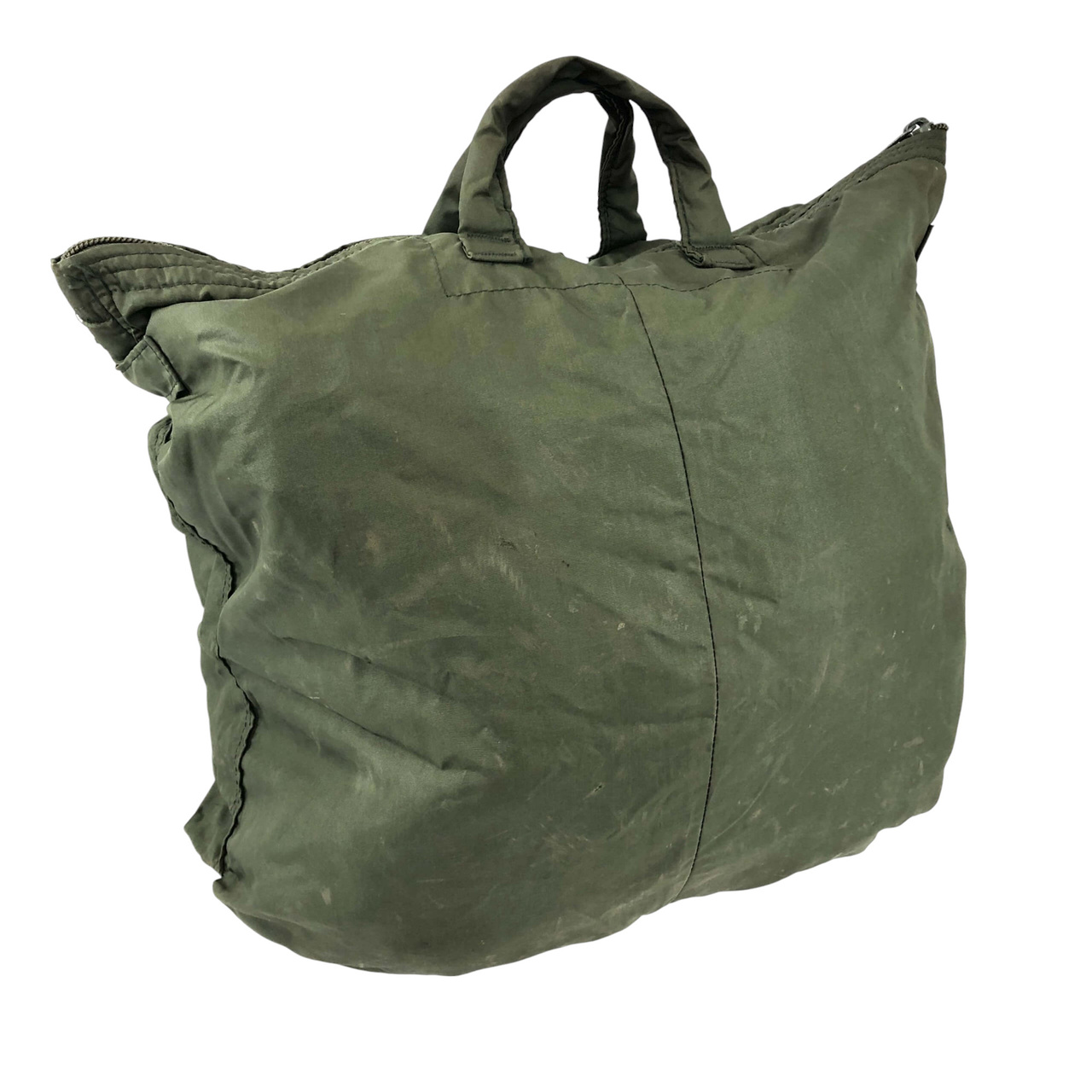 This is an original vintage bag designed for transporting flight helmets and other sensitive gear, used by pilots and aircrew members of the United States military. It was specifically built to protect delicate equipment, with a fully padded interior. Made from durable materials, the bag reflects the ruggedness and quality associated with U.S. military standards.