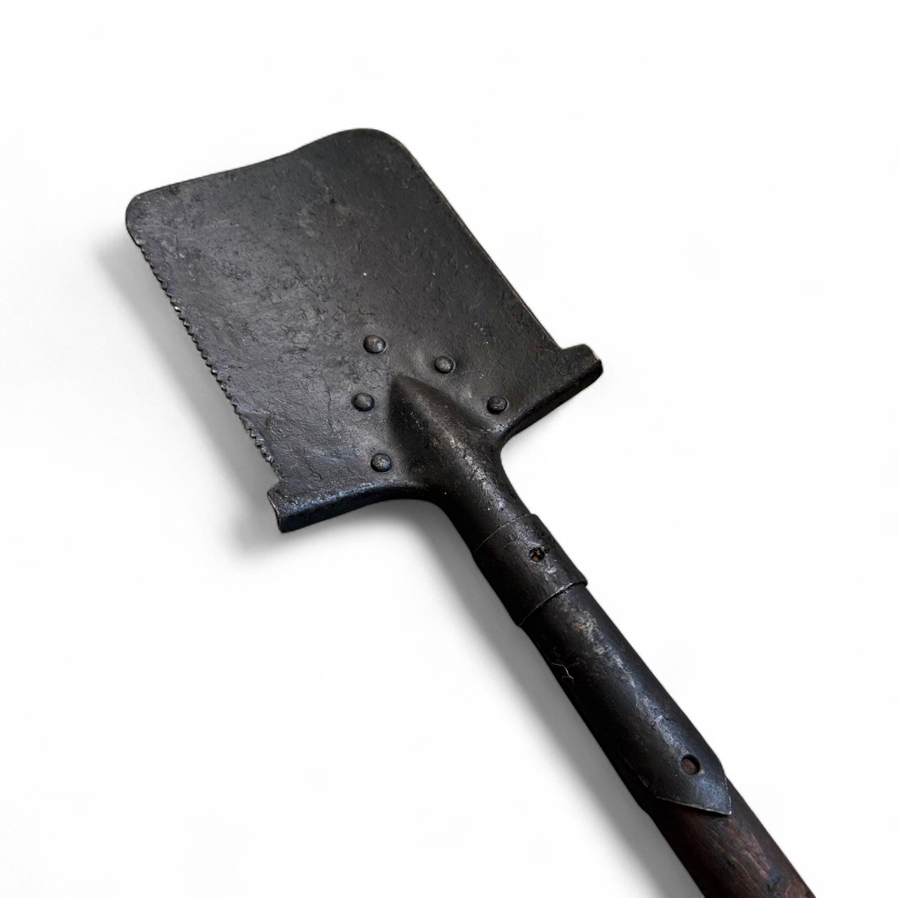 This original trench shovel was used during both World War I and World War II and follows the classic German model. It was an essential tool carried by soldiers on the front lines, used for digging trenches as well as in combat situations.