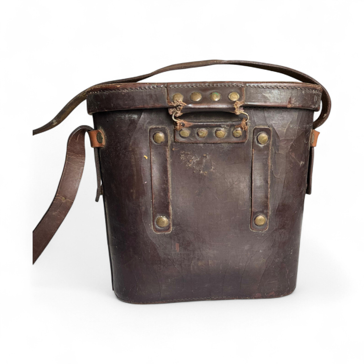 Adjustable side carrying strap made of thick leather (approx. length: 150 cm);