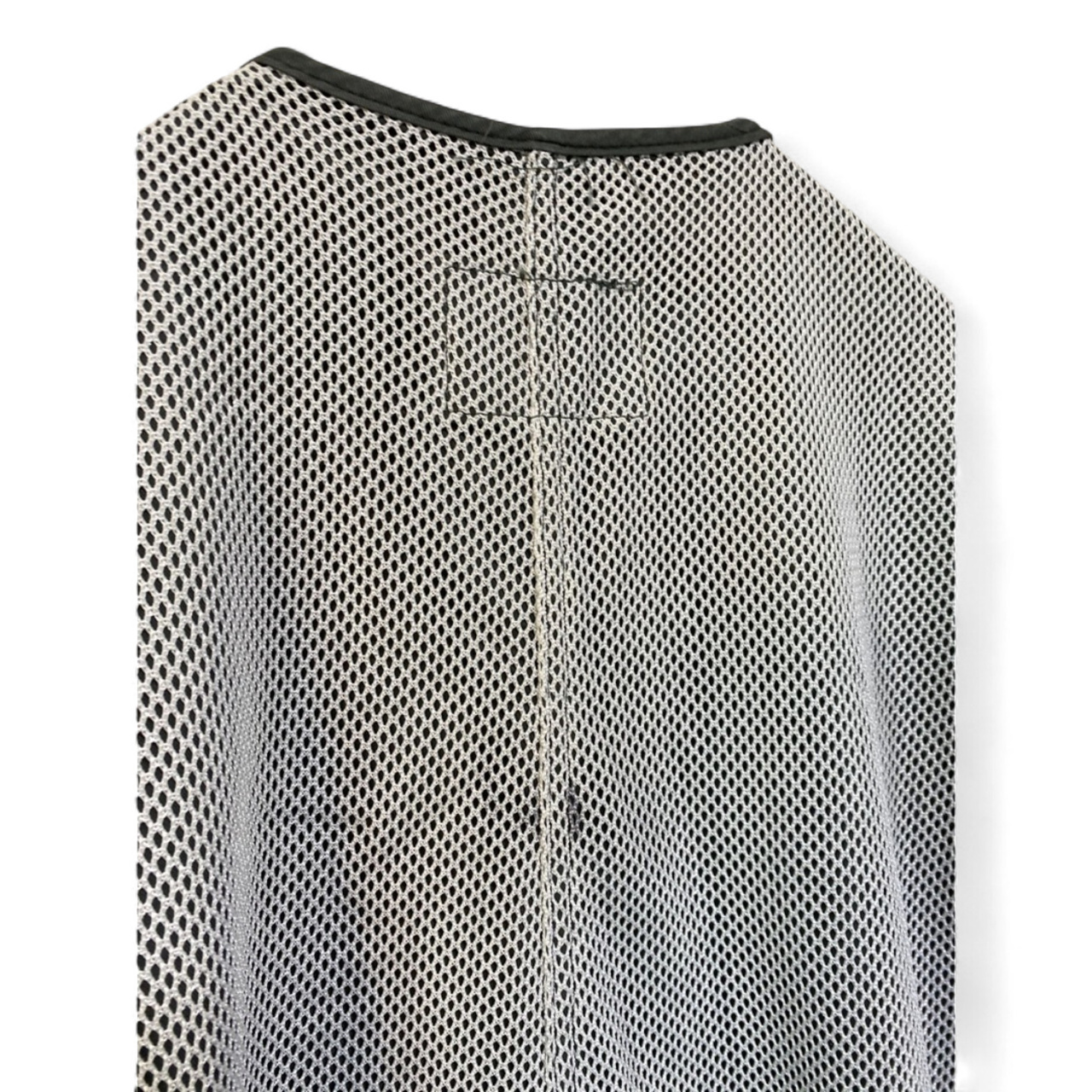 This is a reversible model, with the outer layer made entirely of mesh for optimal ventilation, and the inner layer made of a sage green stencil-printed fabric.
