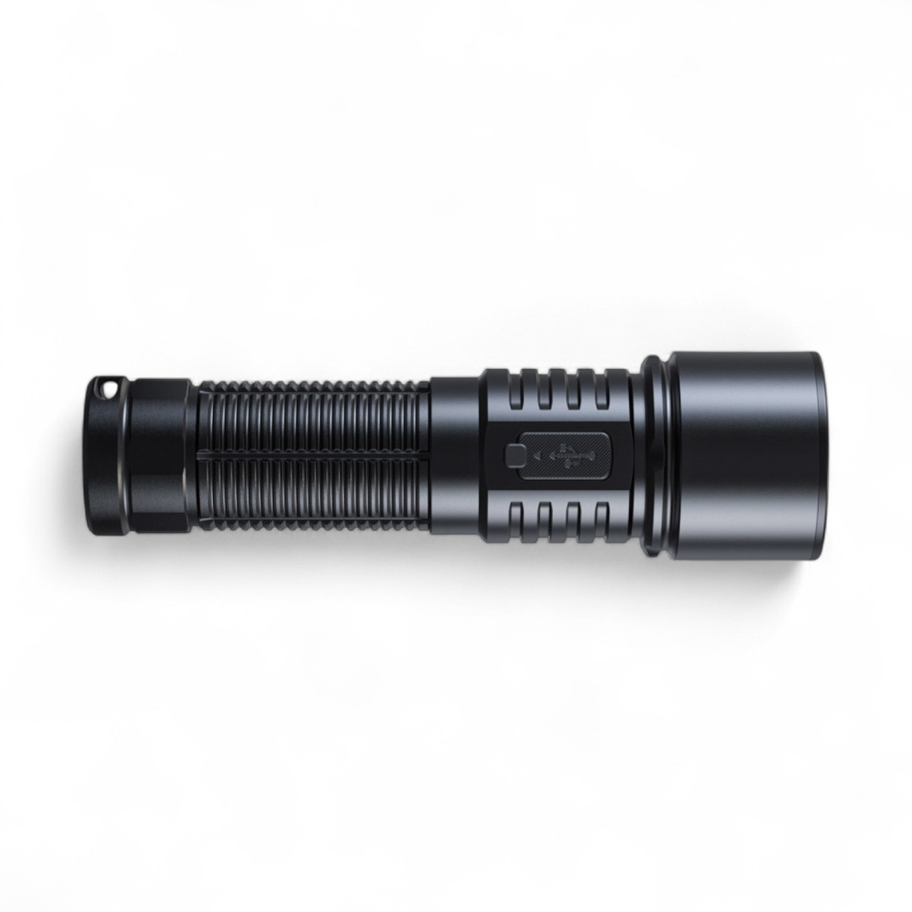 The Fenix LD45R runs on a 5000 mAh internal battery, which charges quickly via the USB-C port protected by a rubber cap against moisture, rain, and dust. The device has reverse polarity protection, and its IP68 rating guarantees complete resistance to dust, dirt, and immersion in water (2 meters for 30 minutes). The flashlight can also withstand drops of up to 1 meter, making it ready for use in difficult conditions.