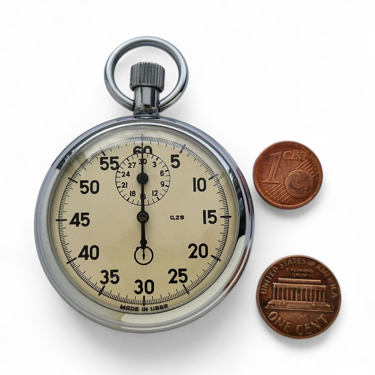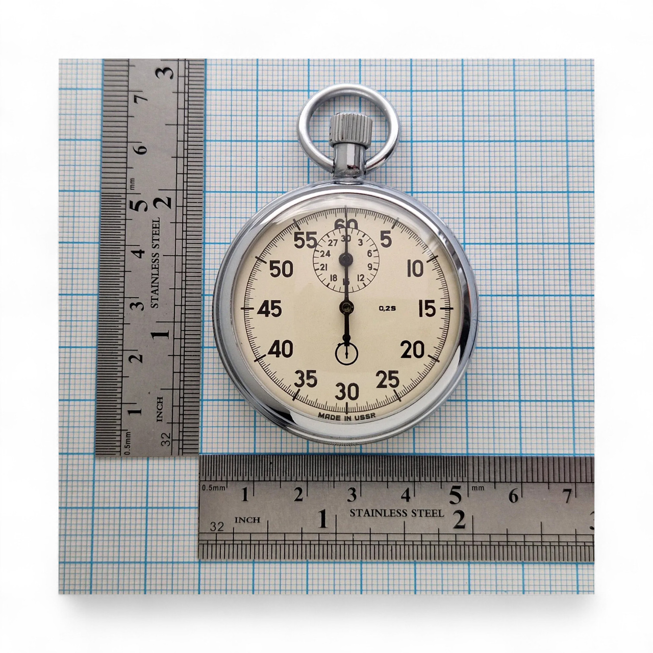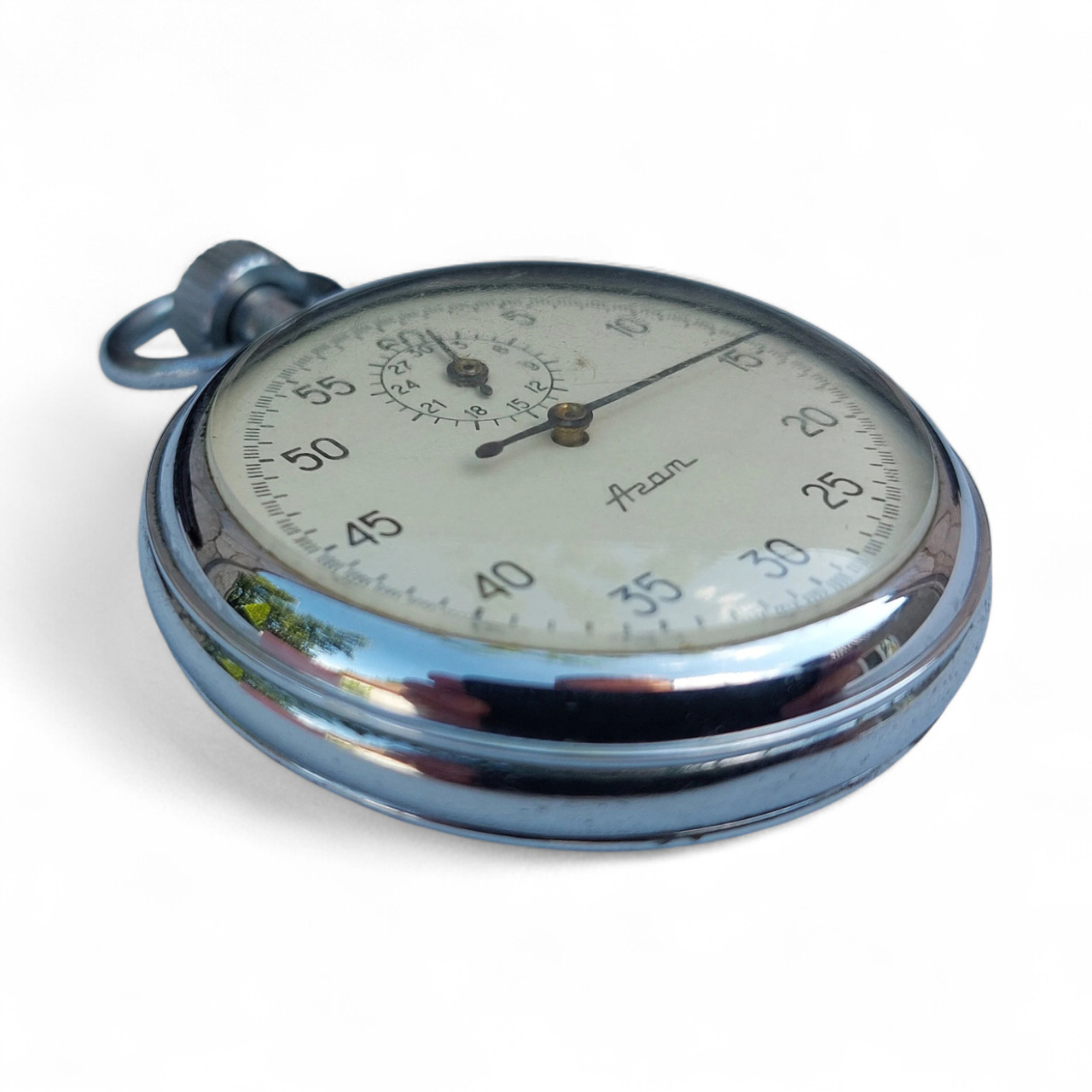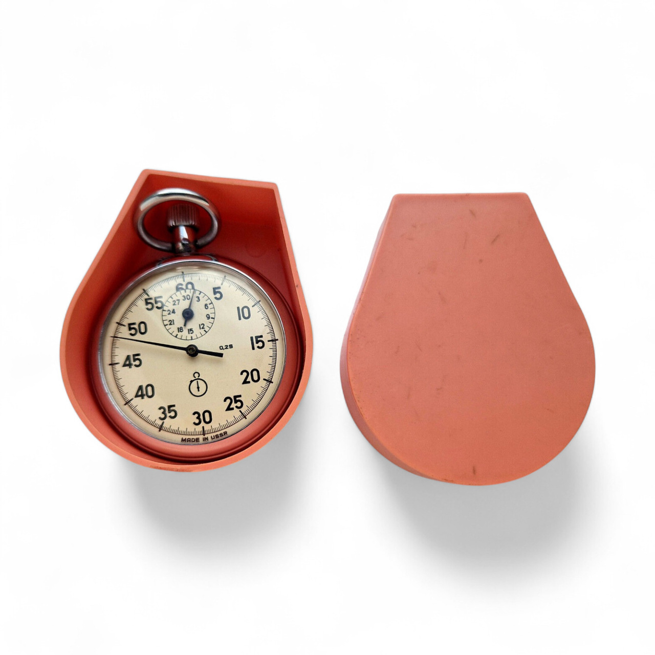 Vintage AGAT mechanical stopwatch, manufactured in the 1970s in the former Soviet Union by the Agat watch factory in Zlatoust. Model with 15 jewels, manual winding mechanism, and analog display.
