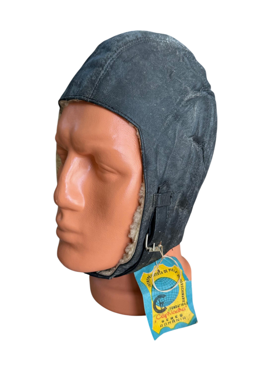 LEATHER AVIATOR HELMET - ROMANIAN ARMY MILITARY SURPLUS - BLACK - USED