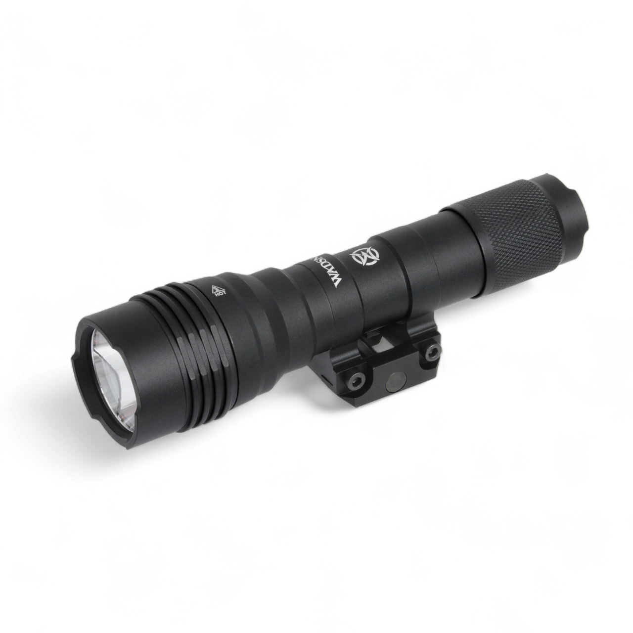 The WD04063 flashlight for weapons is designed for Picatinny rails.