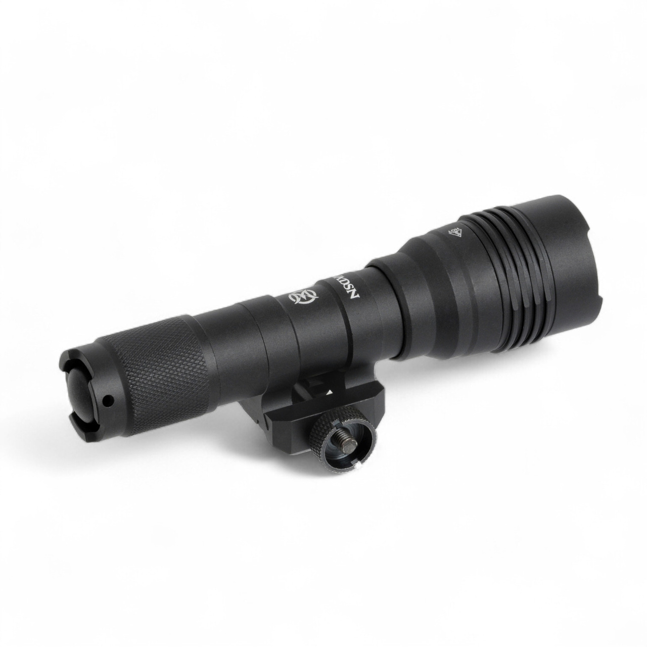 It is an ideal flashlight for large and heavy weapons, thanks to its aluminum construction, which makes it resistant to shocks and falls. It has two lighting modes: continuous light and high-frequency strobe, which can effectively blind and disorient the opponent. The 550 lm light beam will easily illuminate even distant targets in complete darkness.