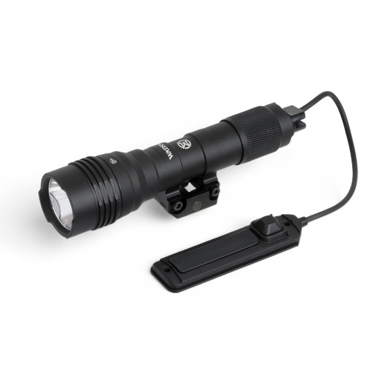 Thanks to the use of the remote switch, the flashlight can be operated without removing hands from the weapon.