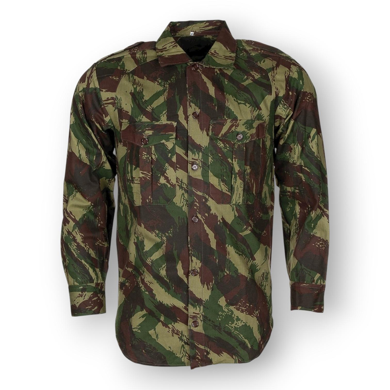 This Portuguese Army Lizard camouflage shirt is a collectible piece, highly sought after and hard to find. It is part of the original military equipment and remains in excellent condition, ready to wear.