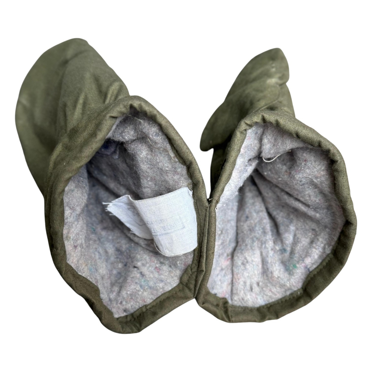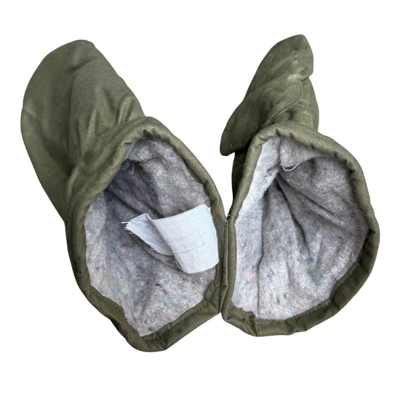 These winter mittens come from the Romanian Army military surplus and are made of durable tent canvas material, known for its strength and water resistance.