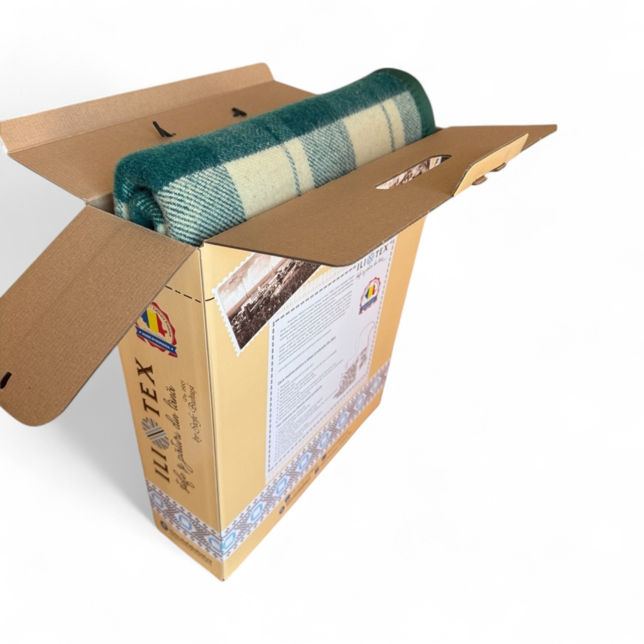 Wrap your home in the calm of nature with the Aura Verde Merino wool blanket – a true symbol of authentic warmth and Romanian craftsmanship. Woven from high-quality Merino wool, it offers a soft, pleasant texture while maintaining the subtle elegance of the emerald green and cream checkered pattern.