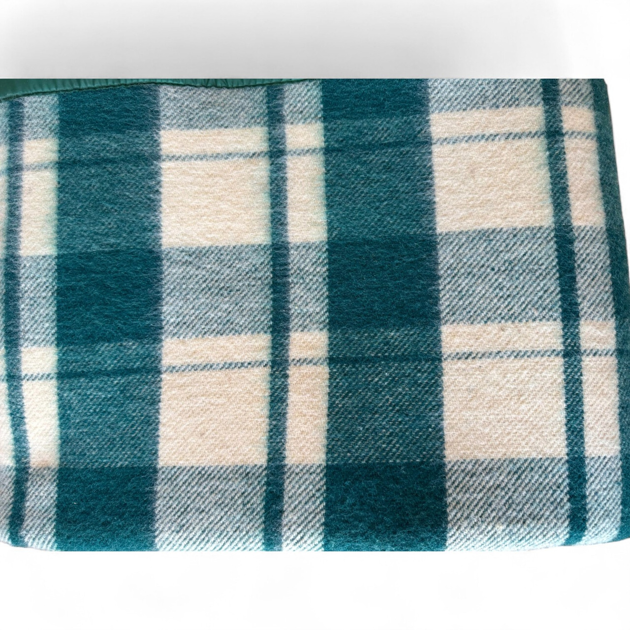 • Merino Wool Blanket with Premium Gift Box - Aura Model - Classic - 150x200 cm - Emerald Green/Cream Checkered