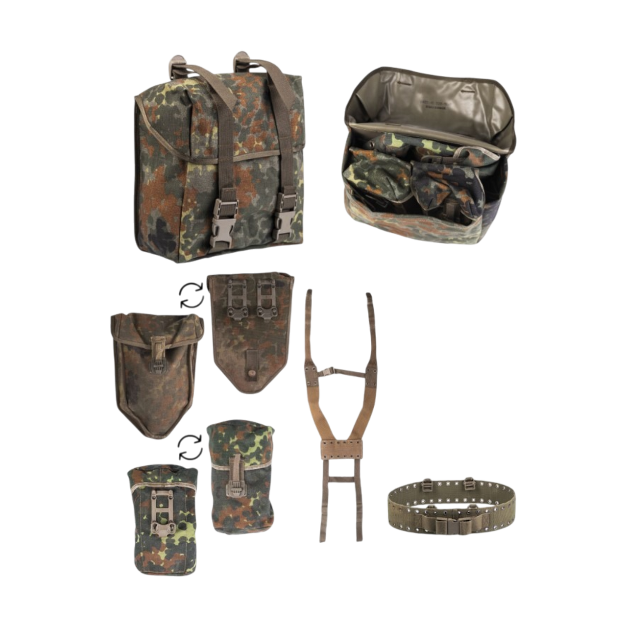 The Flecktarn camouflage provides excellent integration into the natural environment, and the robust construction ensures durability even in difficult conditions.