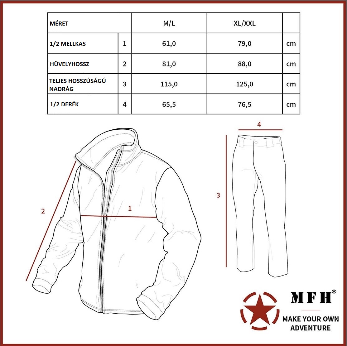 - elasztikus húzózsinór az ujjvégeken és a derékpántokon