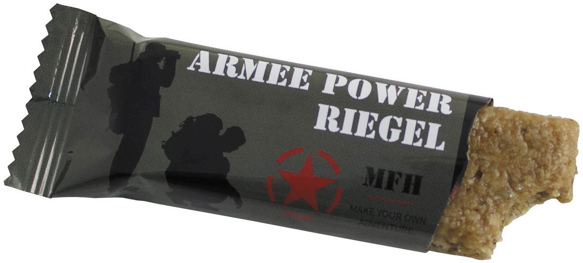 Army Power Bar energiaszelet zabbal és banánnal. Guaranából származó koffeint tartalmaz.