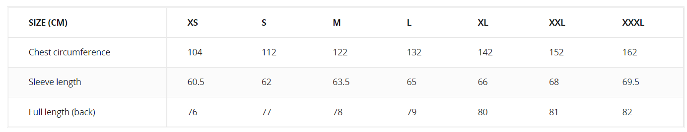 - Tépőzáras panelek az ujjak felső részén és a mellkason a könnyű testreszabhatóság érdekében