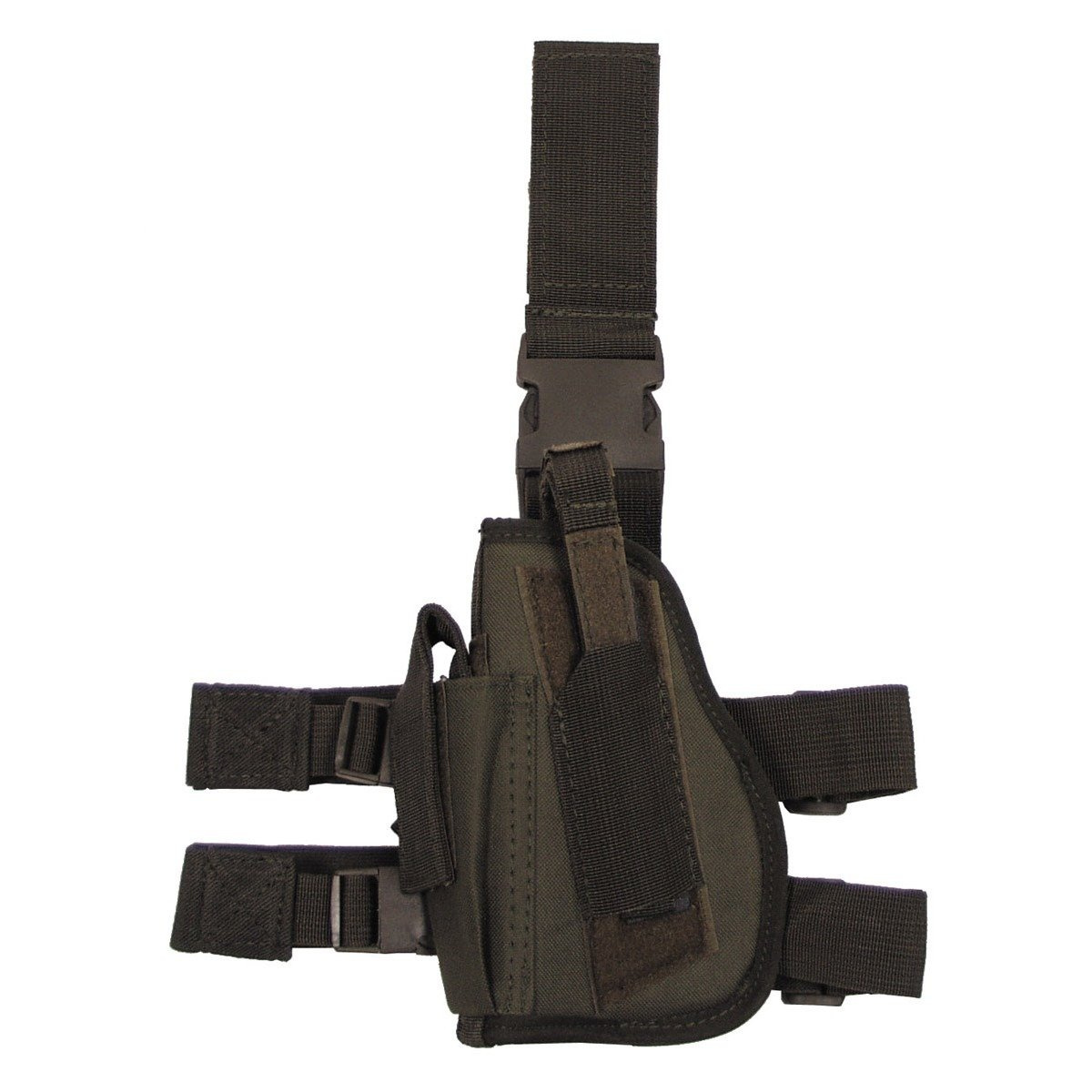 Minőségi, strapabíró taktikai tok minden népszerű pisztoly hordozására, közepes és nagyméretű pisztolyokhoz egyaránt. Egyetlen beépített, tépőzáras elülső magazintáskával rendelkezik. A pisztolytáska a combhoz rögzíthető 2 állítható, rugalmas, gyorskioldó csattal ellátott lábpánttal. Széles, állítható hosszabbítóval is rendelkezik, amely tépőzárral rögzíthető a hevederhez. A hevederek még a legnehezebb küldetések során is biztosítják a stabilitást. Érdemes hozzátenni, hogy a pisztolytáska állítható gyorskioldású hüvelykujjrögzítővel rendelkezik, amely dupla kampós biztonsági patenttal rendelkezik a hüvelykujjrögzítő felett, amely a pisztoly markolatát a helyén tartja. Ezenkívül a tok alja nyitott, hogy a pisztolyok aljára hangtompítót vagy hasonló elemeket lehessen szerelni.