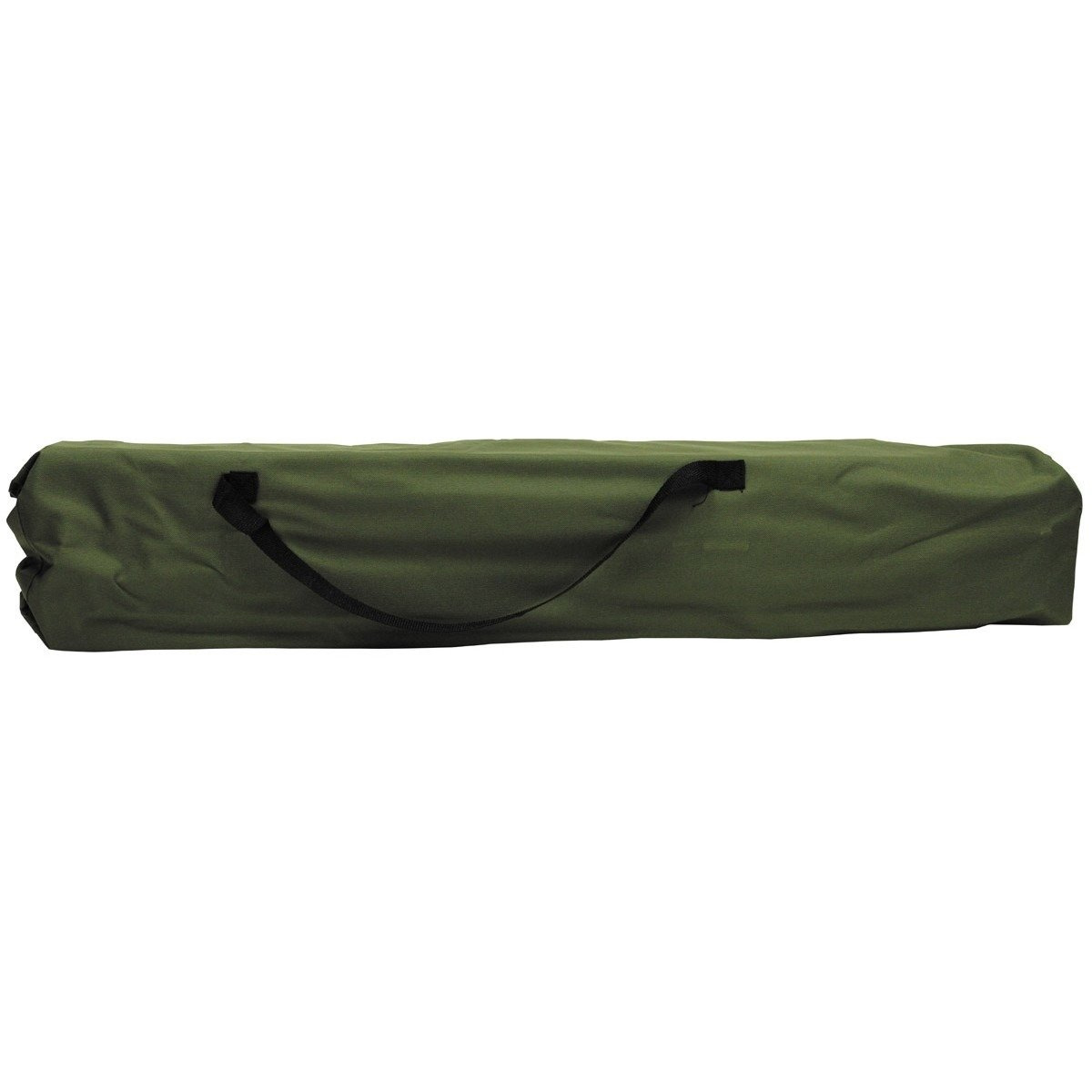 Kiváló minőségű ágy a német MFH gyártótól. Praktikus, gyors és könnyen összeszerelhető, erős alumínium vázzal és tartós poliészter anyaggal. Tömören csomagolja a mellékelt hordtáskába.