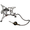 Összecsukható gázfőző Piezo gyújtással és gázcsővel. A gázégő rozsdamentes acélból készül sárgaréz szeleppel.