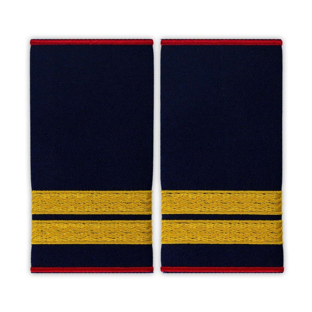 Va oferim grade pentru sef tura SVSU – SPSU cu marginile brodate cu fir rosu. Broderia este realizata direct de producator din fir Madeira Polyneon 100% polyester de culoare galbena. Suport confectionat din tesatura 65/ 35% bumbac polyester are intaritura termcolanta si este in nunanta navy asigurand un contrast foarte bun intre el s broderie.