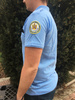 Piquet rövid ujjú kötött póló, kék, 100% pamut összetételű.