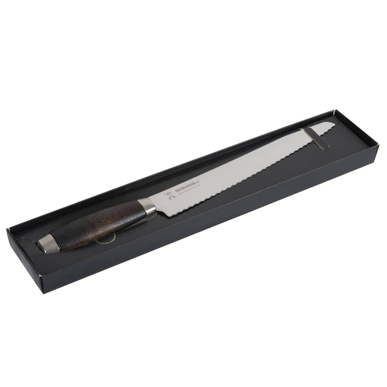 Ez a kenyérvágó kés a legjobb minőségű svéd rozsdamentes acélból készült, a titkos Mora receptünk szerint edzett. A beépített ujjvédő biztonságosabb kezelést biztosít, a fogantyú pedig ergonomikusan lett kialakítva, hogy az ujjakat ne érje a vágódeszka. A kés kézzel készült, valódi fa markolattal és gyönyörű részletekkel, mint például a Dala címer a fémgyűrűn, amely tovább növeli a konyhai élményt.