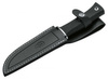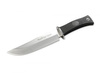 Ez a Muela vadászkés sorozat következetes jellemzője a műanyag elasztomerből készült, rendkívül csúszásmentes markolat, amely évek óta nagy népszerűségnek örvend minden olyan késhasználó körében, akinek a kés funkcionalitása a legfontosabb kritérium. A műanyag elasztomer nem csak nedves körülmények között, hanem nagyon hideg időben vagy kesztyű viselésekor is sokkal biztosabban fog, és lényegesen nagyobb tapadást biztosít, mint a klasszikus, természetes anyagból készült markolatok. Emellett természetesen a nedvességgel szembeni ellenálló képessége is sokkal nagyobb. A nyelet egy rozsdamentes acélból készült metszőelem zárja le a pengéhez. Fekete bőr tokkal szállítjuk. Vadászkés nagyobb vadakhoz, amely kompakt kültéri késként is használható. Clippoint pengével.