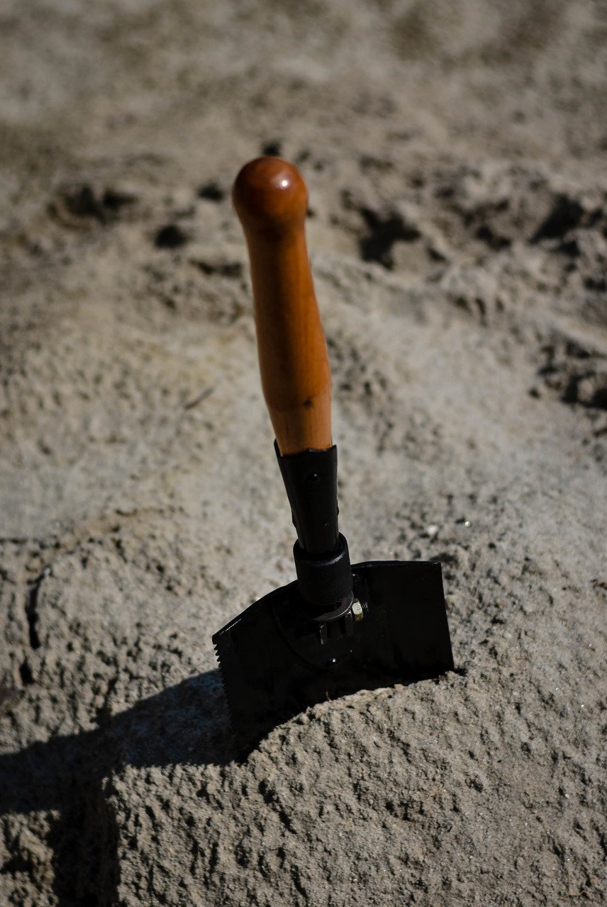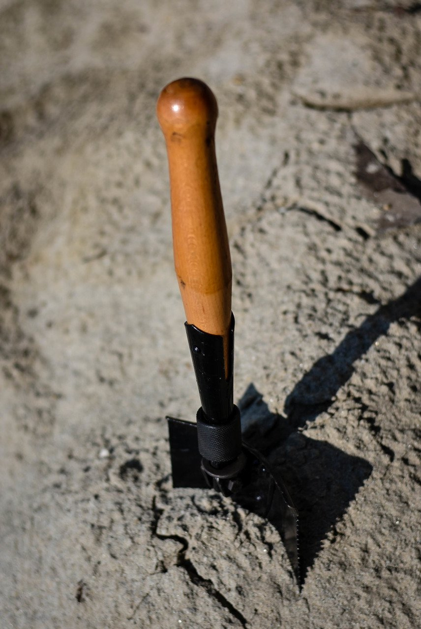 Összecsukható, katonai típusú lapát, robusztus és funkcionális