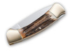 Our long-standing classic, the Boker 3000, is still very popular in its numerous variants as a Pocketknife for hunting, everyday life or outdoor use. The bellied blade and the massive nickel silver handle ensures the high stability. The handle scales are made of stag, which combines a natural, traditional look with insensitivity and stability. In combination with the finely polished nickel silver fittings, this creates an extraordinary appearance. The drop point blade is made of stainless 440C and secured by a Backlock.