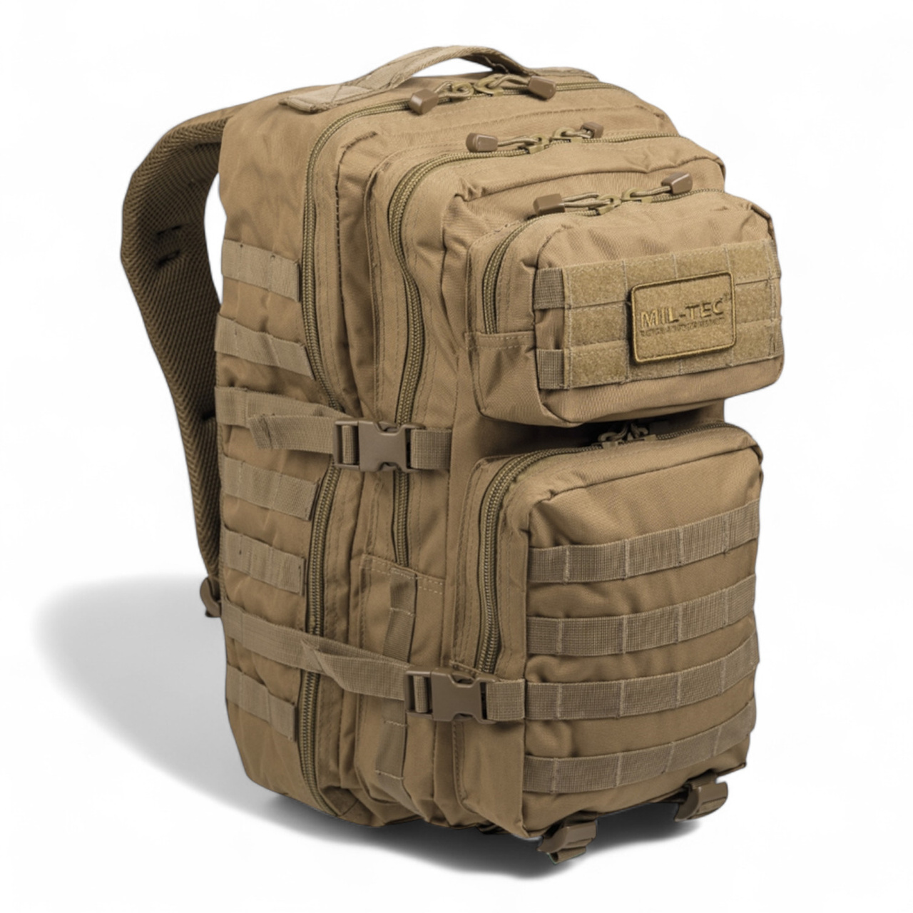 Praktikus és ergonomikus Assault hátizsák a német MIL-TEC gyártótól, poliészterből, 36 literes kapacitással, ideális mindennapi használatra vagy szabadtéri tevékenységekre.