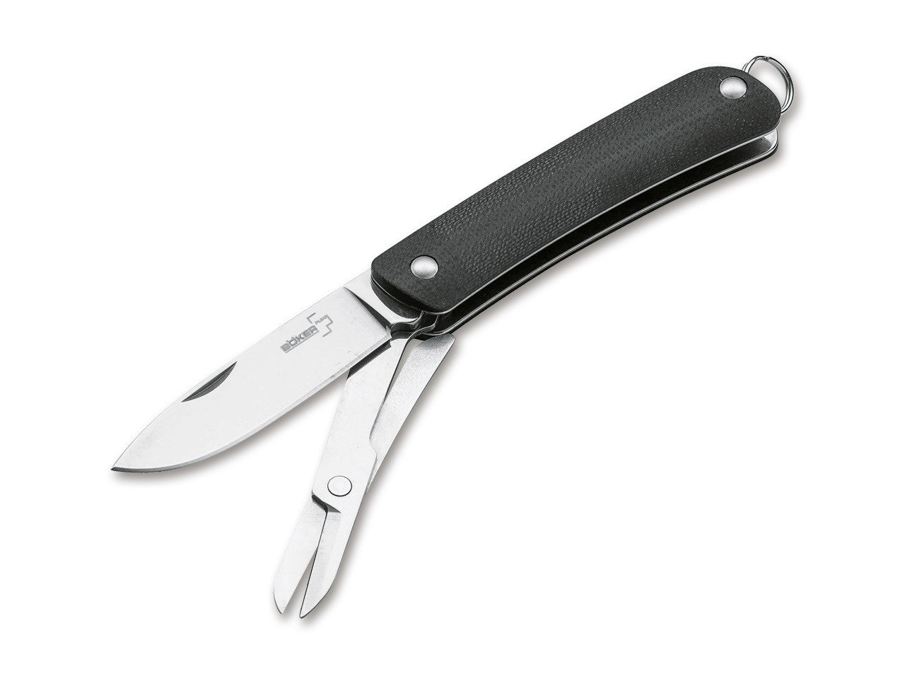 A Böker Plus Mini Tech Tool 52 mm hosszú pengéjével lényegesen használhatóbb, mint a legtöbb kulcstartóra tervezett zsebkés, mégis tökéletesen illik a méretkategóriába. A Mini Tech Tool nagy testvéreihez hasonló jellemzőkkel rendelkezik, polírozott pengéje Sandvik 12c27 rozsdamentes acélból készült, markolata pedig kontúrozott G10 csavarozott felépítéssel. A kés mellett rendelkezik egy univerzális pengével, mely csavarhúzóként, hevedervágóként és sörnyitóként funkcionál.