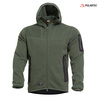 Fleece kapucnis cipzáras kapucnis pulóver, 100% poliészter 140Gsm, természetes kötött gyapjú kinézetű textúrával és puha fleece belső béléssel, a kéz- és karzsebeket zökkenőmentesen keményhéj anyaggal kötötték össze.