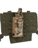 - Tépőzáras felület a hátoldalon a különböző taktikai felszerelésekhez, például mellényekhez, hámokhoz, hátizsákokhoz stb. való rögzítéshez.