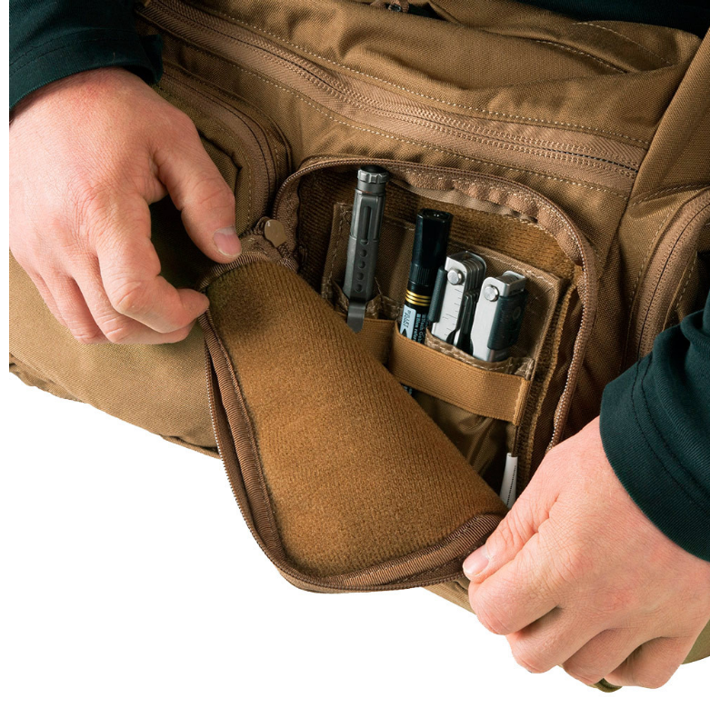 Durable fabrics and carry strap allow to carry in comfort – even if stuffed with heavy kit. The design allows quick access to the contents and makes stuffing things a breeze. Featured solutions allow individual compartmentalization of the interior. There are four external zippered pockets. Two front ones are lined with loop velcro. Front of the bag also has an inset pocket with velcro panel. The main chamber has two zippered internal mesh pockets, two pockets with elastic band closure and large velcro panel to attach any of the Versatile Insert System-compatible inserts from our catalog. Universal Carrying Strap® serves as the carrying strap. Several PALS loops allows to attach additional pouches or lanyards to the strap. The buckles allow using the same strap to carry some other bags from our catalog.