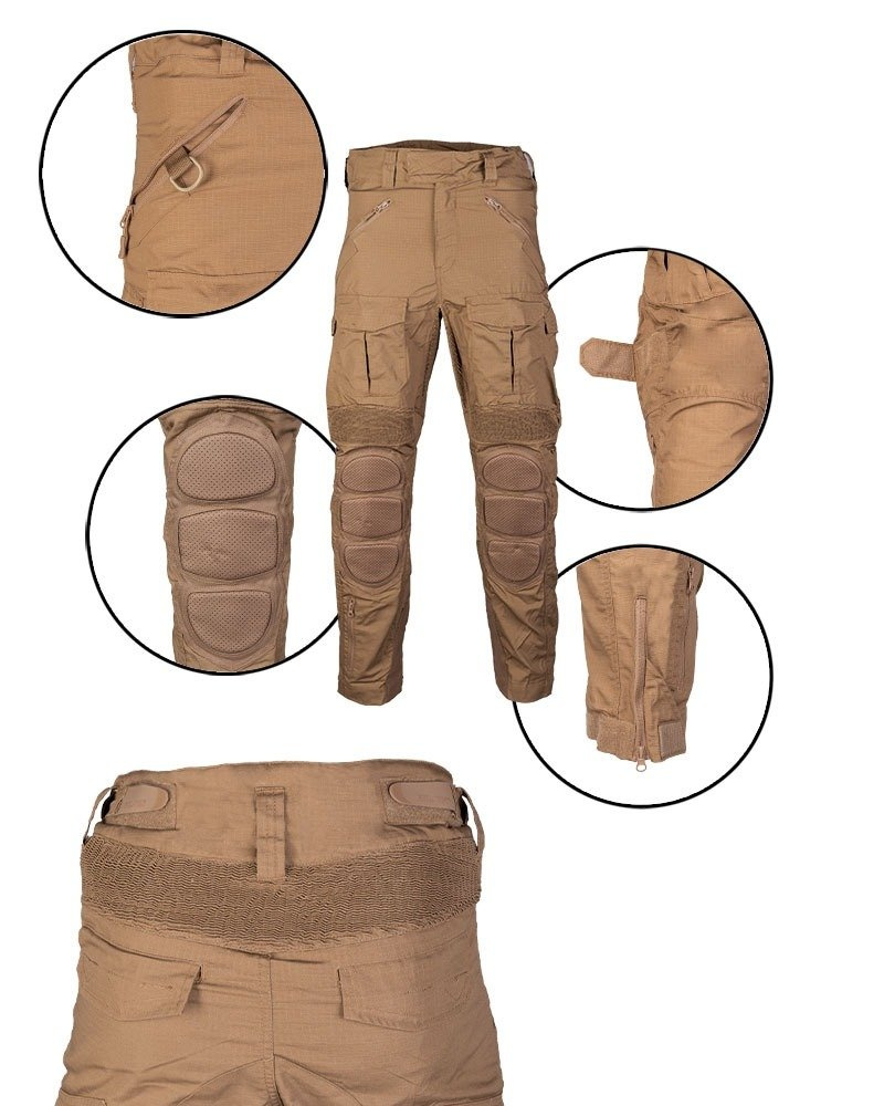 • Kiváló minőségű taktikai nadrág a német Mil-Tec® gyártótól, rugalmas betétekkel és megerősítésekkel a stresszpontokon, számos zsebbel, valamint EVA habszivacs párnázással védett térd- és sípcsonttal.