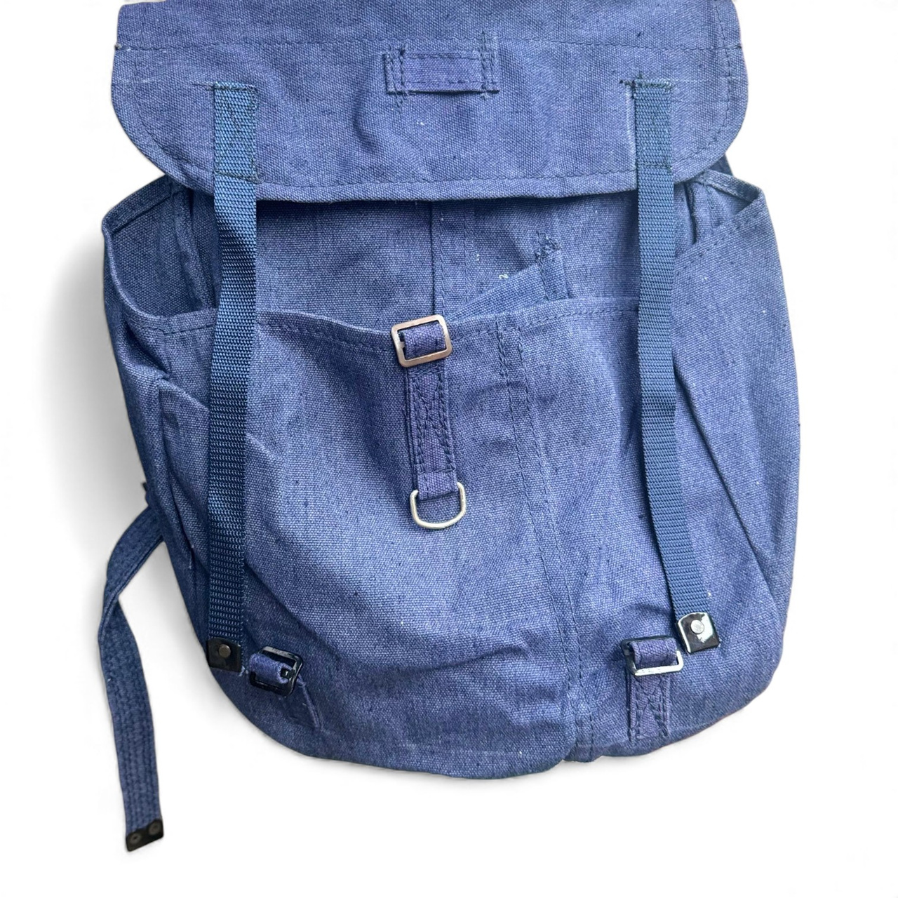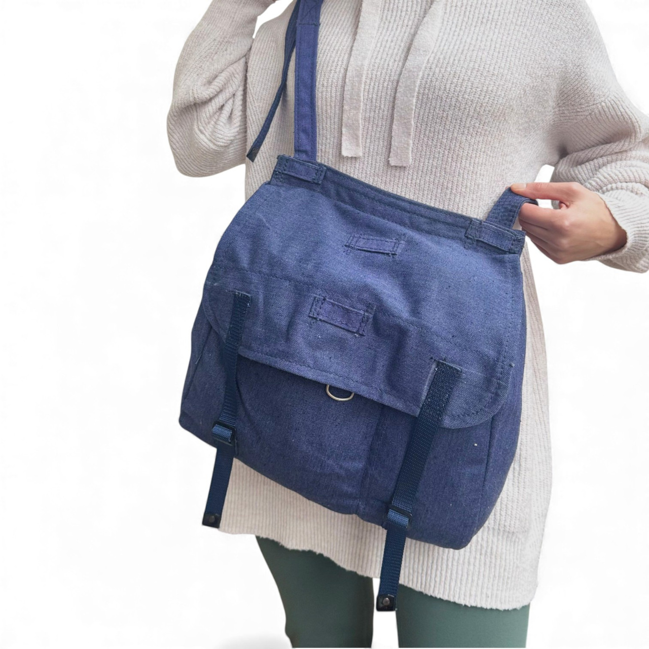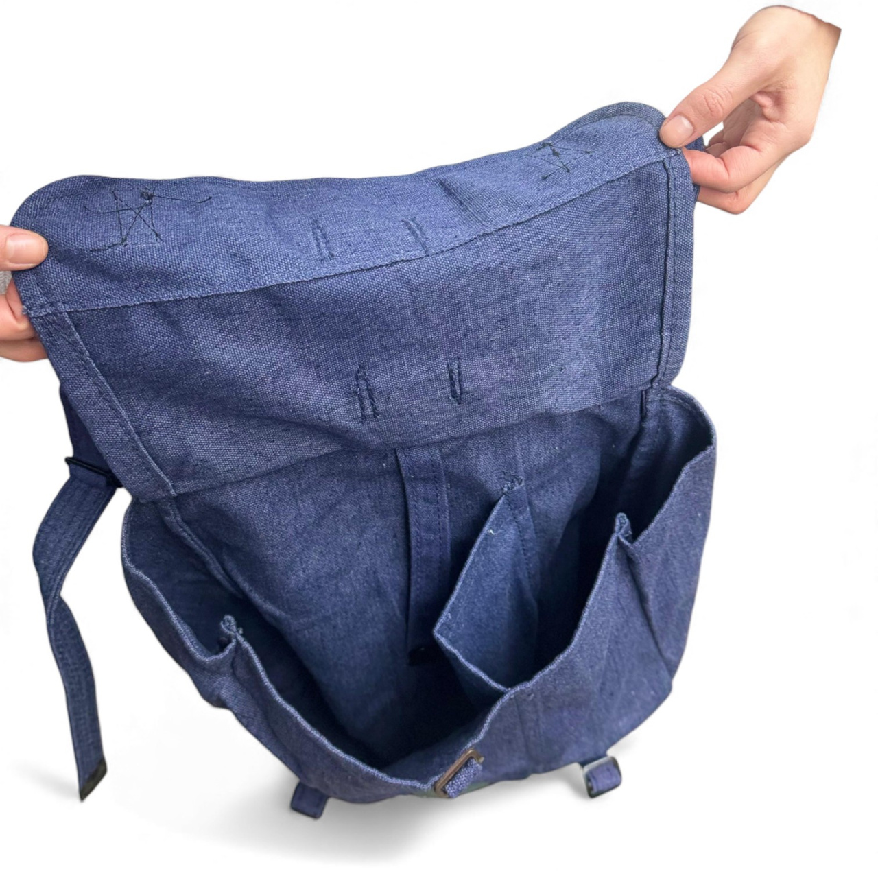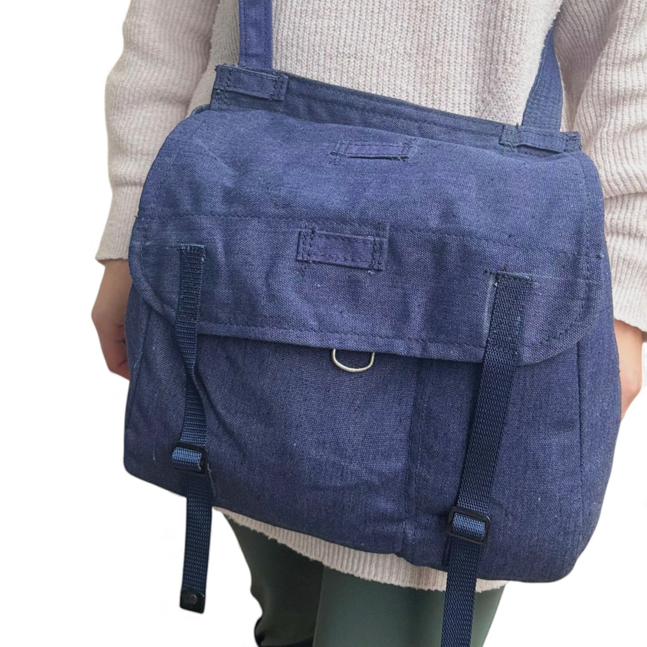 Military SurplusKék katonai táska bőr pántokkal, második világháború utáni, román hadsereg feleslege - Újszerű
