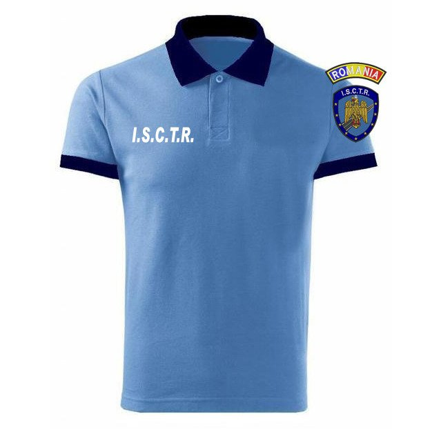 Piquet rövid ujjú kötött póló, világos kék, 100% pamut összetételű.