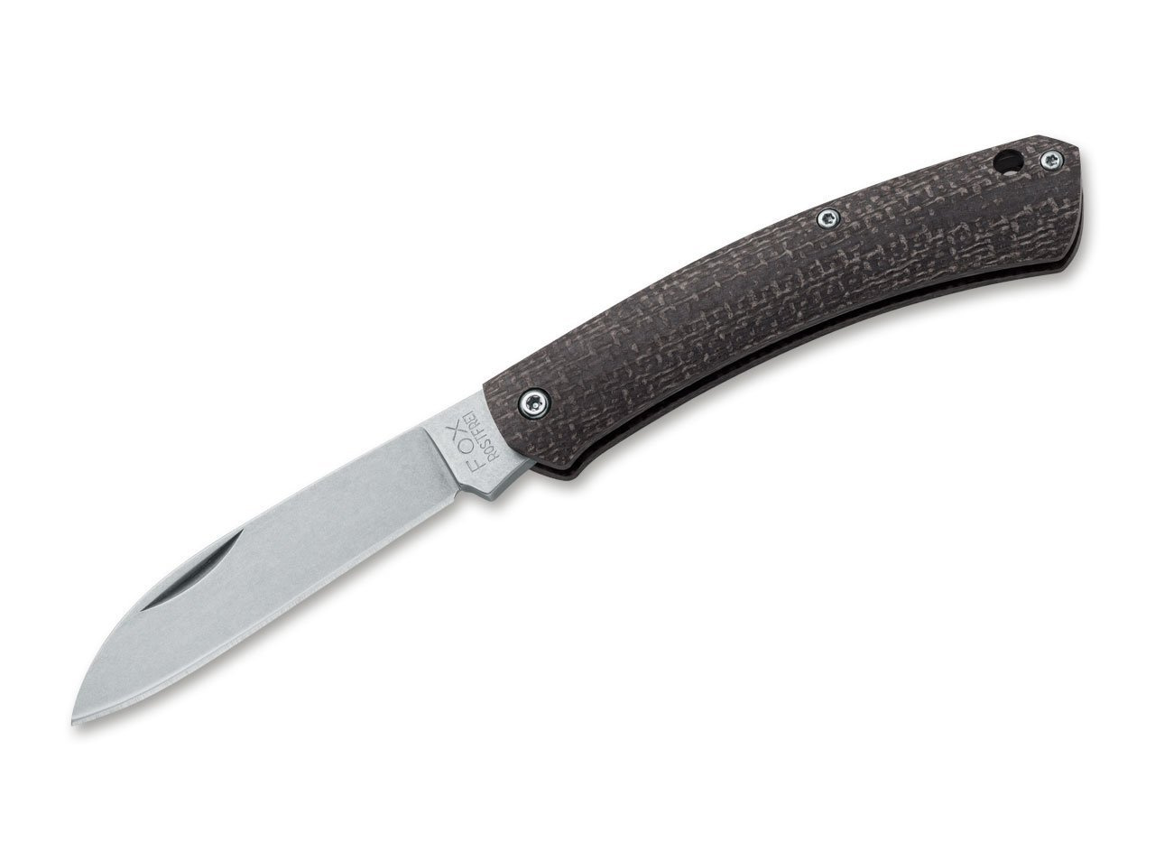 With the Nauta, Fox Knives is introducing a reliable everyday companion. Its 420C stonewash blade is cut and shaped by the rough sea, and can handle even the most stubborn sailor's yarn. It is opened by nail nick and does not lock. The non-slip handle scales are made of brown Micarta. With lanyard hole.