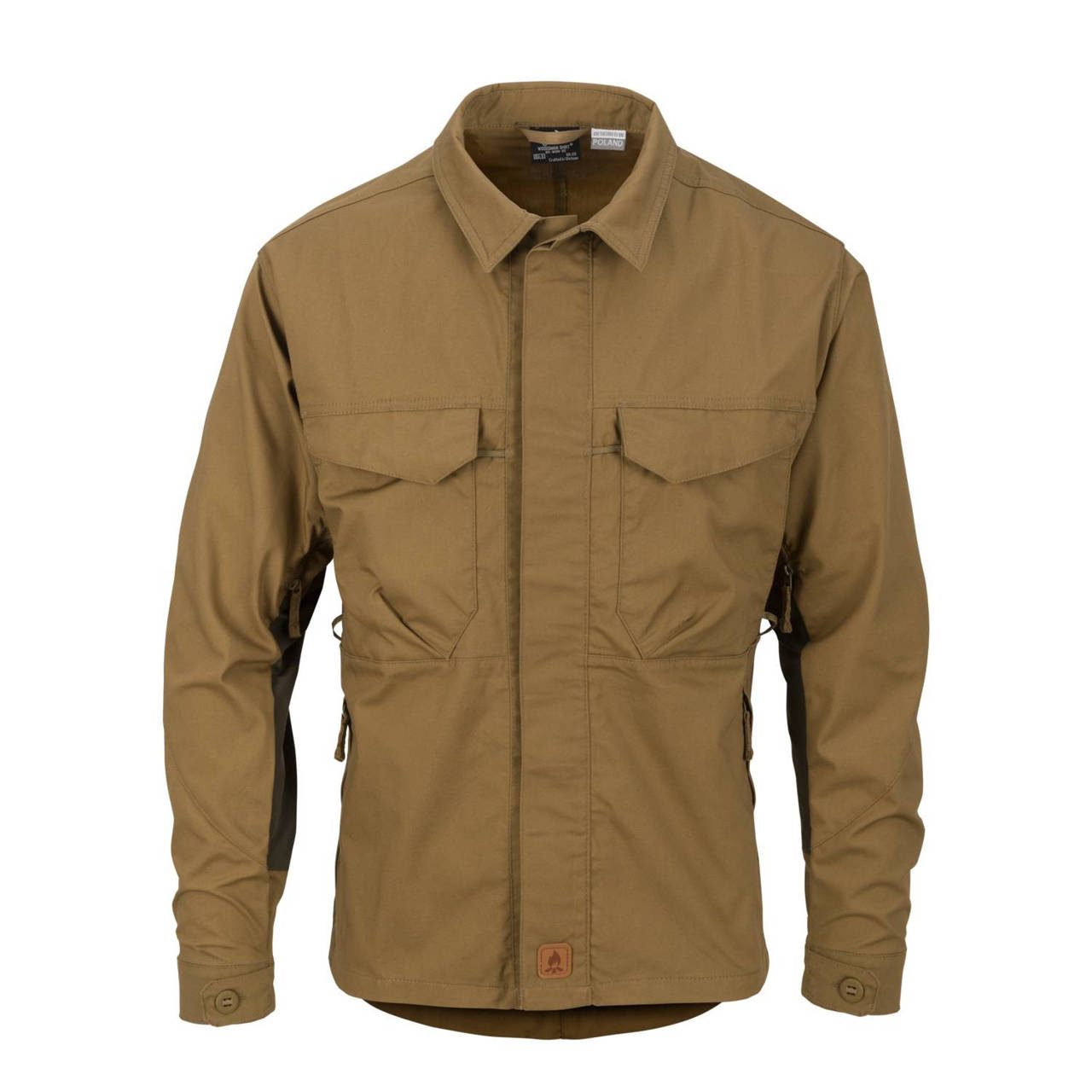 DuraCanvas® anyagból készült, könyökrészén extra megerősítésekkel, így a legkeményebb körülmények között is jól teljesít. Hogy viselője szabadon mozoghasson, a hátrészbe rugalmas VersaStretch anyagból készült paneleket varrtak. A cipzáras hónaljszellőzés kényelmet biztosít a nagy igénybevételű tevékenységek során. A klasszikus, gombokkal ellátott mellzsebekben könnyen elférnek olyan tárgyak, mint például zsebkés, ampermérő, iránytű stb. A zsebekben hordott tárgyak megkötésére és rögzítésére lapos hurkok használhatók. A Woodsman két belső hálós zsebbel és egy Napoleon-stílusú cipzáras zsebbel rendelkezik. Maga az ing kanadai gombokkal záródik, amelyeket nagy teherbírású szalaggal varrtak rá.